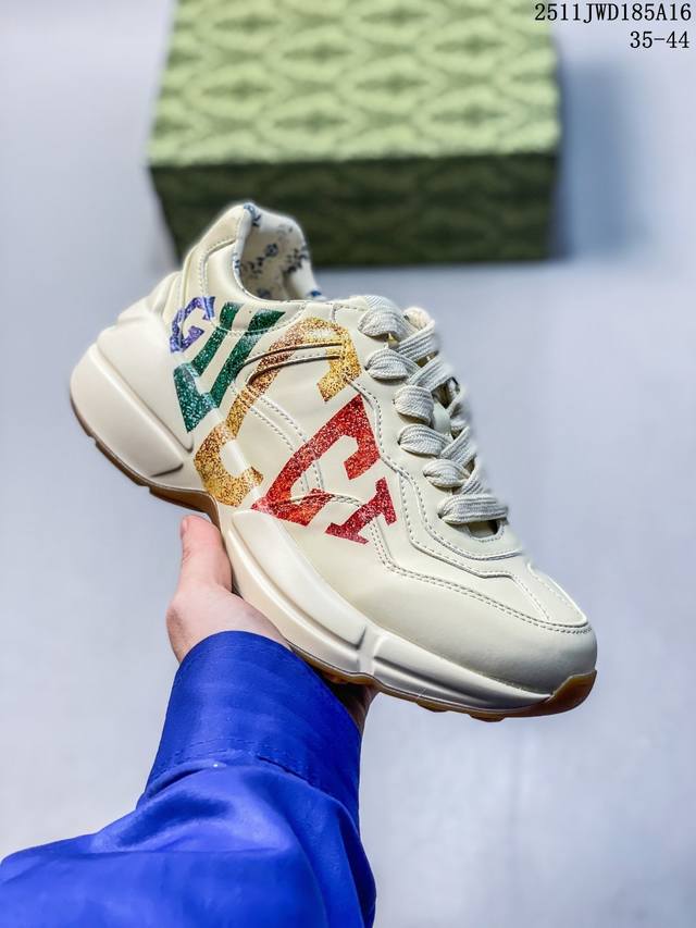 高奢品牌Gucci古驰 Rhyton Vintage Trainer Sneaker 皮革角状复古慢跑鞋630607 Drw00 9522 DDD 码数:35 36 37 38 39 40 41 42 43 44 DDD 编号:140Jwd1117 DDD 11Jwd115A16 DDD