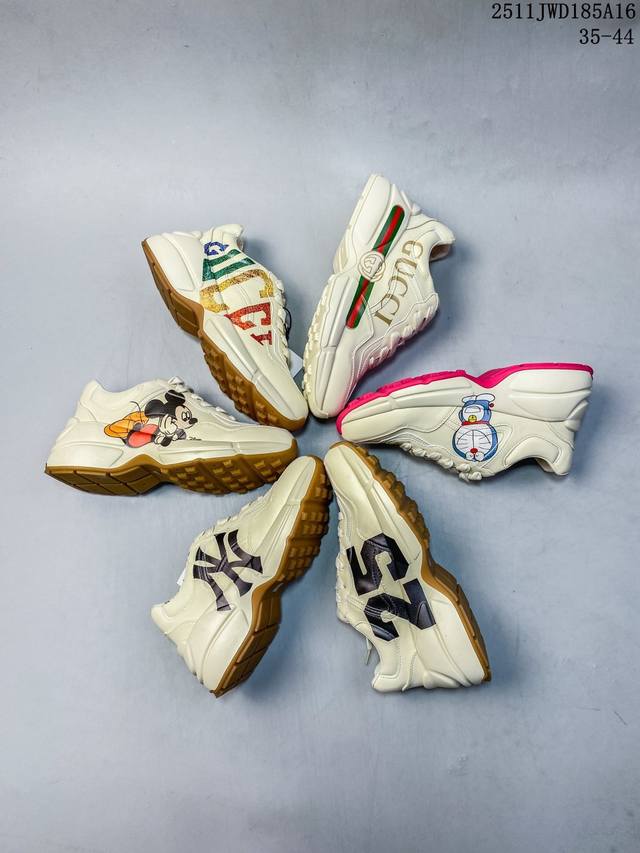 高奢品牌Gucci古驰 Rhyton Vintage Trainer Sneaker 皮革角状复古慢跑鞋630607 Drw00 9522 码数:35 36 3