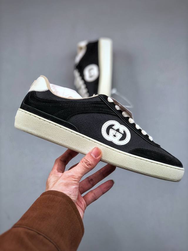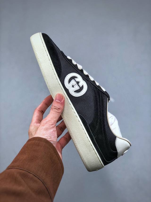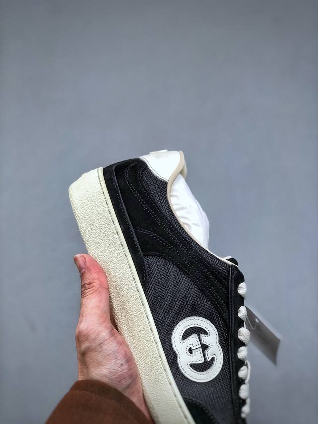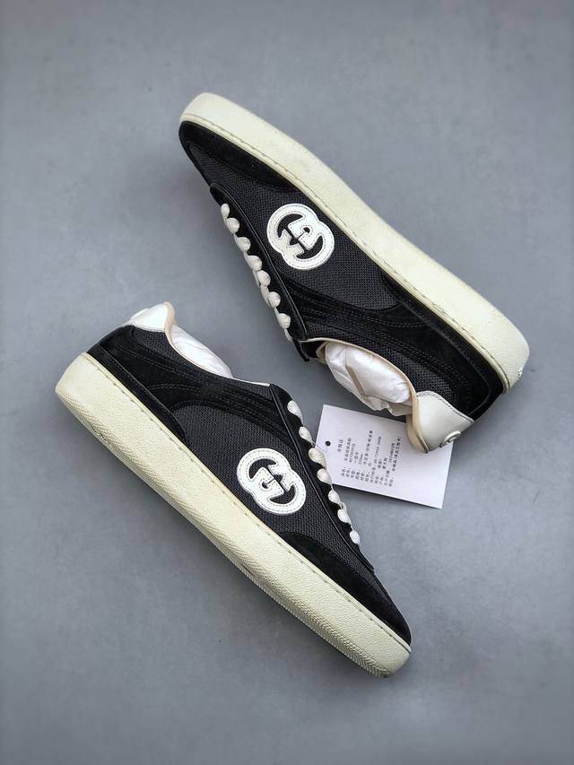 Gucci Interlocking G Suede Sneaker G74系列低帮复古百搭休闲运动板鞋 升级官方最新全套专柜代购2024酒红色配件及包装物(附送官方快递加固包装盒) 采用进口反绒牛皮组合网织布鞋面材质 饰金属双G椭圆形珐琅细节 搭载超软猪皮软糯内里 内嵌超软皮灌注缓震Pu脚垫 鞋底采用固特异内外锁死工艺 最大限度弯折永不开胶 独立双层无痕隔色Tpr组合鞋底