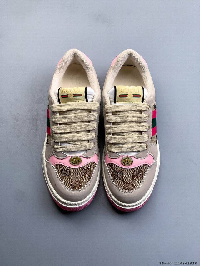 Gucci Distressed Screener Sneaker 古驰小脏鞋系列 官方同步 经典原型复古百搭做旧小脏板鞋复古学院风 怀旧版 1116861S2