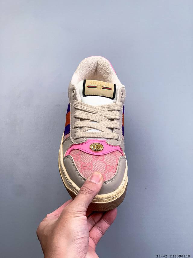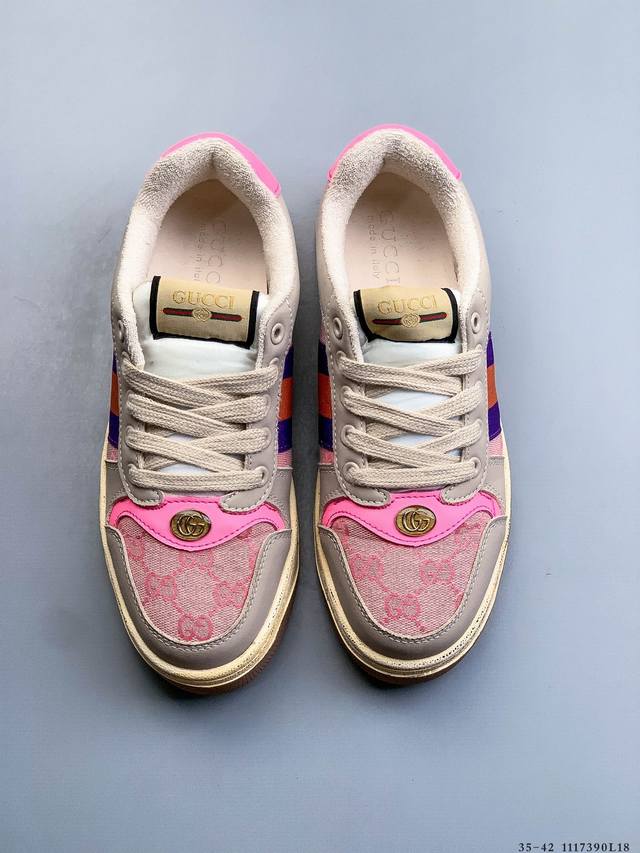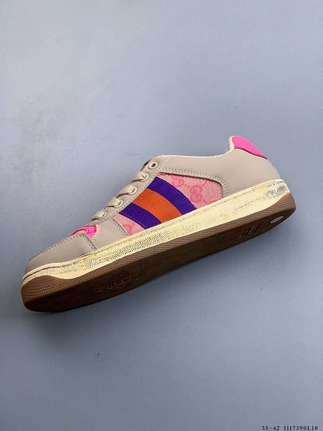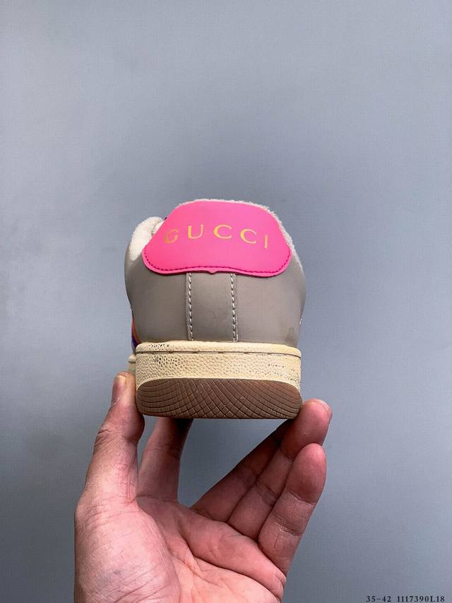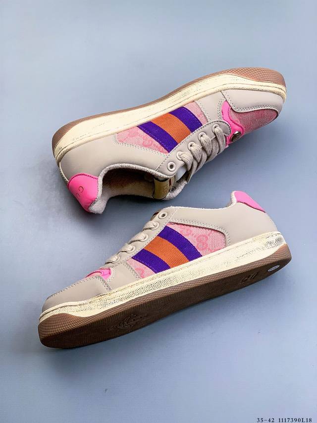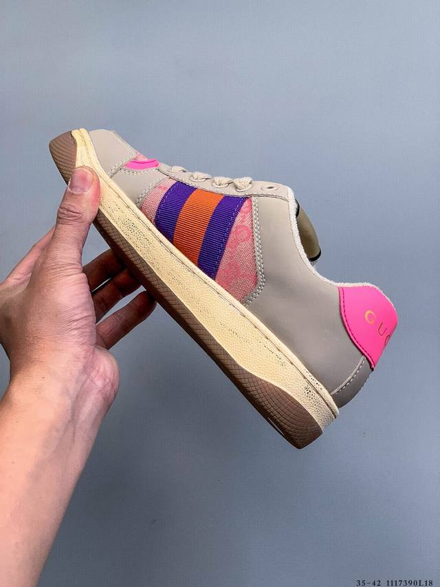 B 公司级Gucci 古驰 Screener 运动休闲时装奢侈品系列 Gg珐琅扣 擦脏做旧小脏鞋 高端零售海淘商家混卖版本 东莞纯原品质...