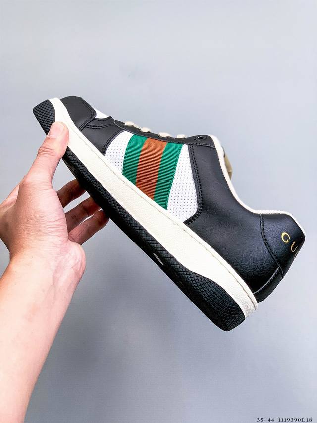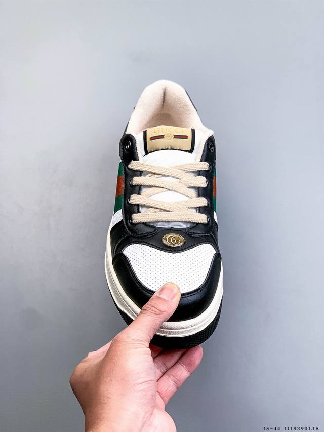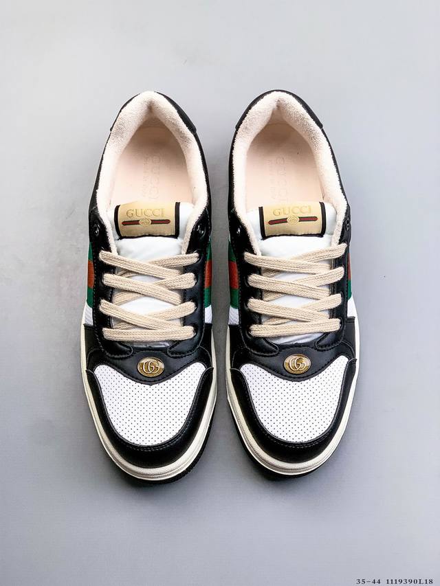 公司级意大利时装奢饰品牌 古驰Gucci Screener Gg Wayne Low 韦恩溶解系列经典原型老爹厚底增高板鞋“皮革米白绿红Gg木纹”...