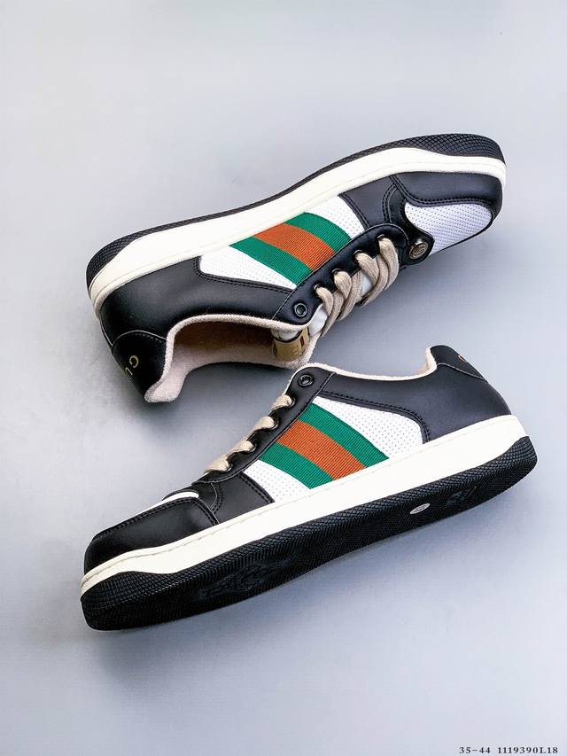 / Gucci Distressed Screener Sneaker 古驰小脏鞋系列 官方同步 经典原型复古百搭做旧小脏板鞋复古学院风 怀旧版 1119390L1