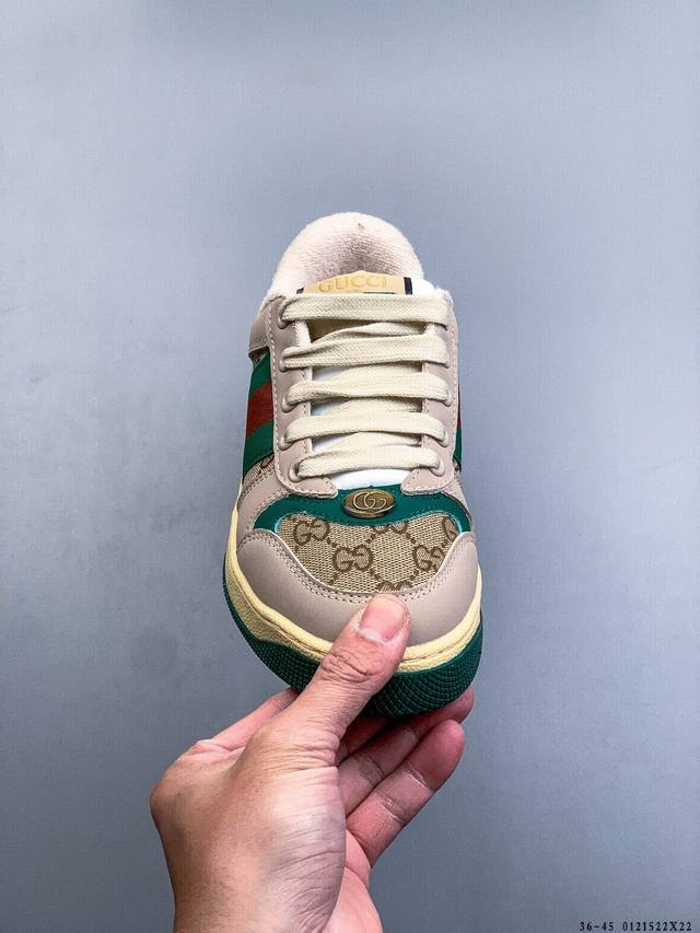 Gucci Distressed Screener Sneaker 古驰小脏鞋系列 官方同步 经典原型复古百搭做旧小脏板鞋复古学院风 怀旧版 DDD 01215