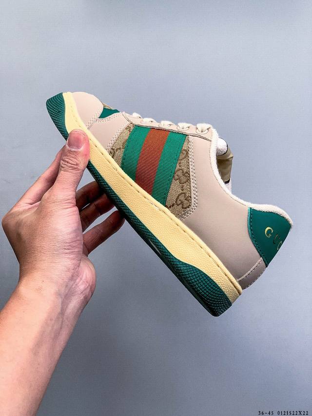 / Gucci Distressed Screener Sneaker 古驰小脏鞋系列 官方同步 经典原型复古百搭做旧小脏板鞋复古学院风 怀旧版 DDD 01215