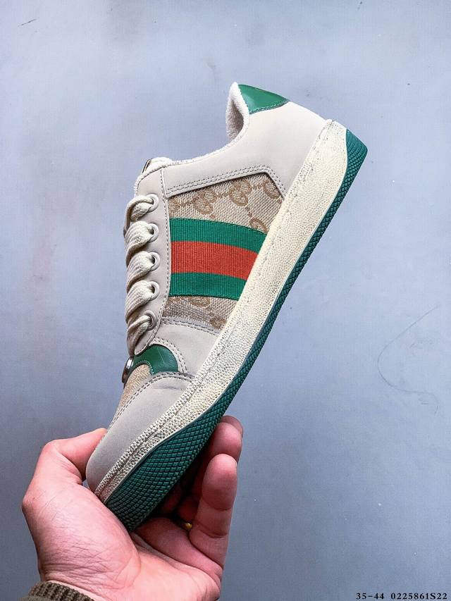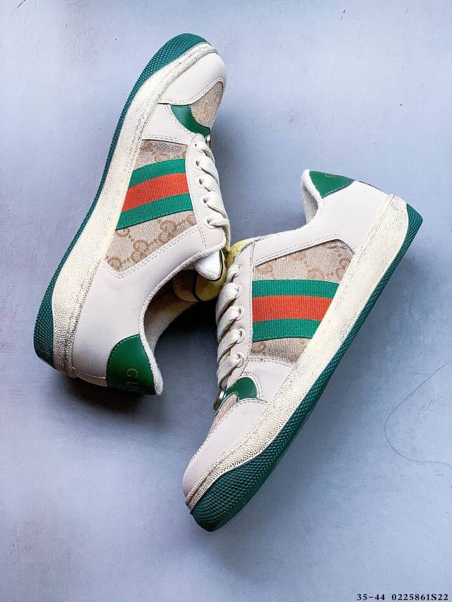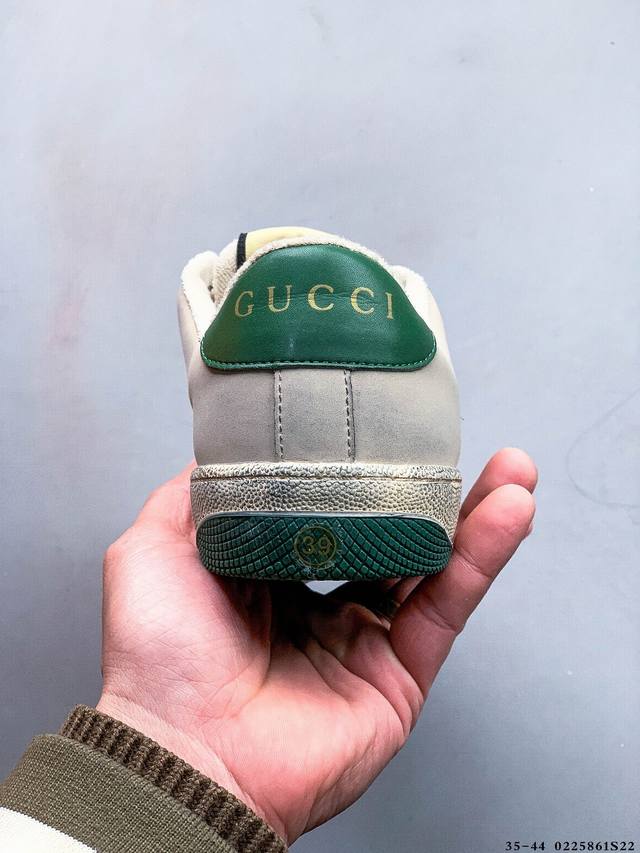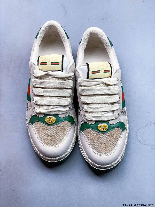 / Gucci Distressed Screener Sneaker 古驰小脏鞋系列 经典原型复古百搭做旧小脏板鞋 0225861S22