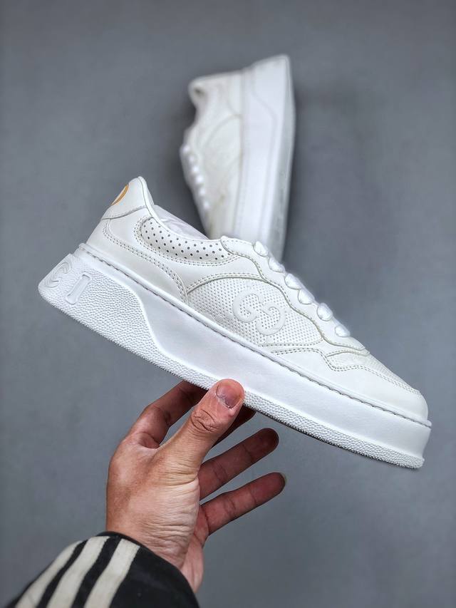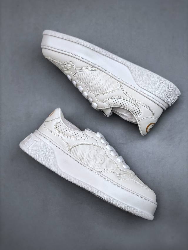 Gucci Screener Gg High-Top Sneaker古驰饼干鞋 运动休闲鞋系列#全套专柜包装物及配件 这款运动鞋采用厚底结构,巧妙运用外观设计、配色和材质三重元素,展现出复古风范。别致的橡胶鞋底,搭配米色和乌木色经典Gg帆布鞋身及同色调皮革滚边,突显时尚大气的品味。意大利进口超软小牛皮 同源出厂真丝绸防尘鞋套袋 原装Ms雪梨形超软沙绒纸团 鞋底采用超软橡胶大底内外锁死工艺 最大限度弯折永不开胶,原鞋一致效果环保无味