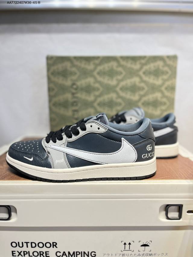 / 公司级头层皮古驰X 乔丹Air Jordan 1 Low Aj1低帮系列篮球鞋 官方同步配色 原装级产物 #拒绝公底 立体鞋型 细节完美 高清洁度Xd0798