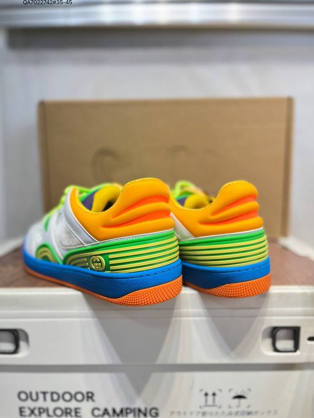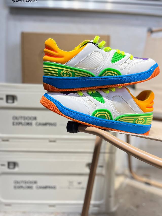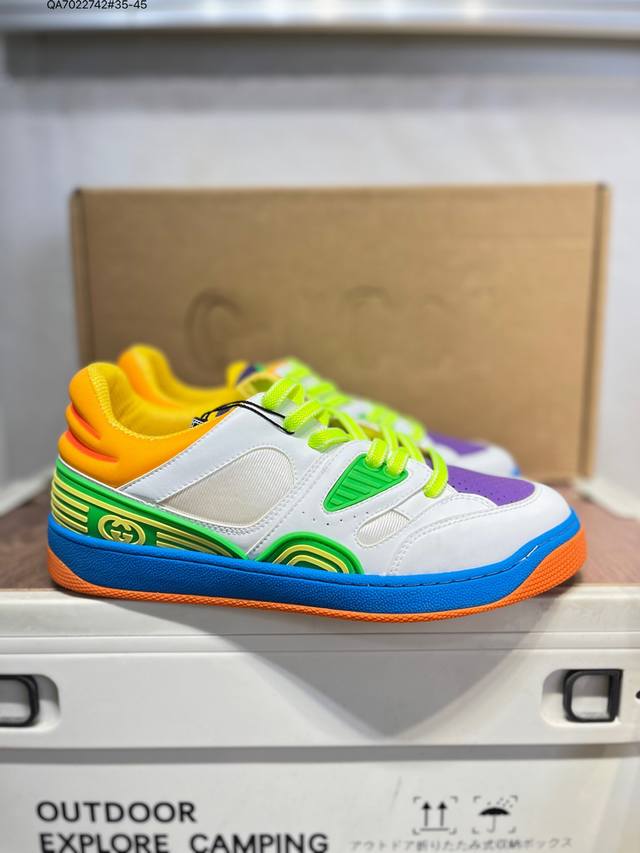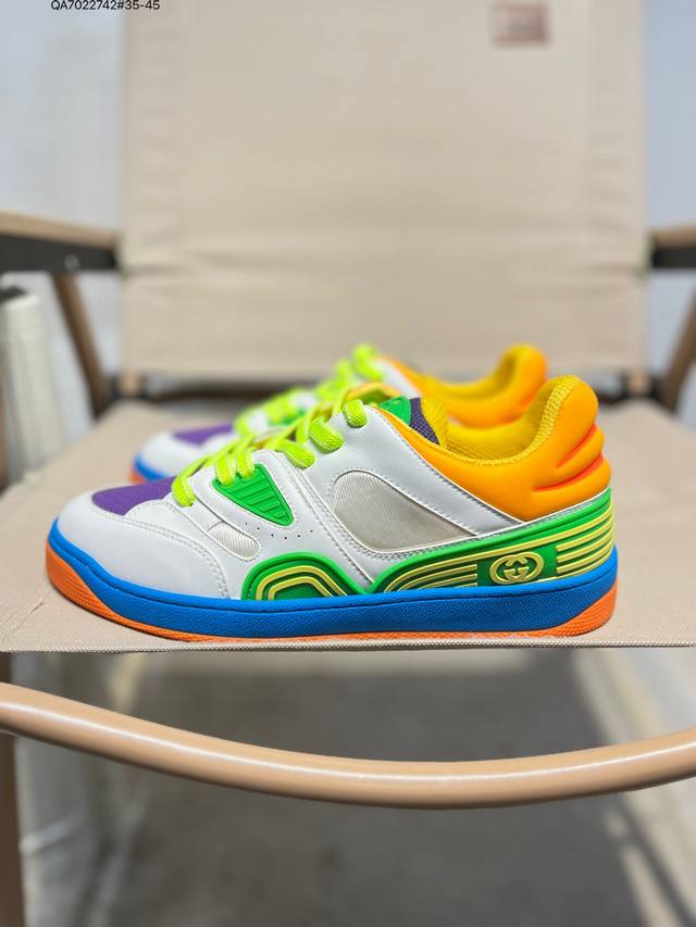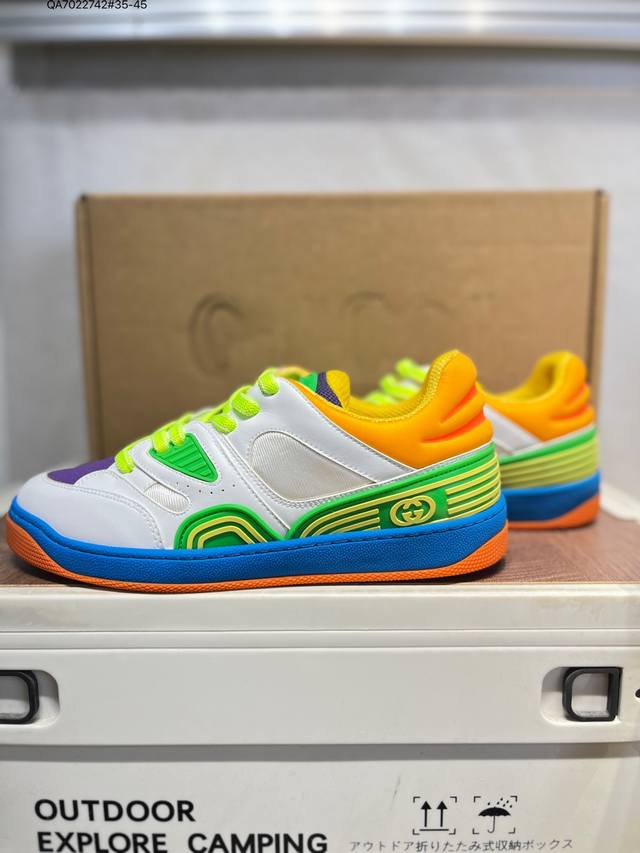 原 版本 双十一福利特价 广东原装高端 Gucci Basket 篮球鞋低帮 情侣款 Gucci Basket球鞋系列 灵感源自于90年代篮球鞋 整个款式非常重工 鞋面融入了标志性的Gucci元素 混搭色太好看啦 彰显自我个性 有轻微的做旧风格 Gucci的粉丝别错过 这款的材料全新采用可持续环保材料Demetra制成,具备柔软可延展的优良特性,这环保材料主要源自不含动物成份 可持续 可再生 鞋底为开模橡胶底 661312 Qa7022742#35-45