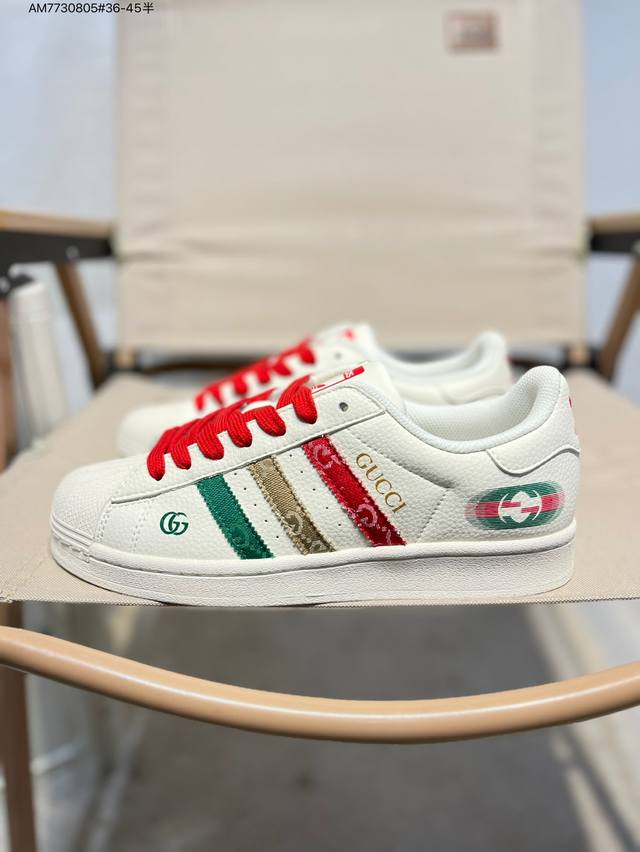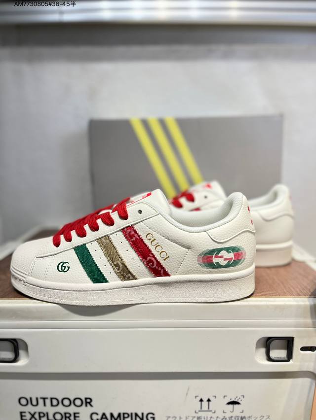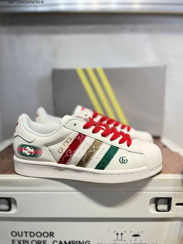 古驰 X Adidas Originals Superstar 经典配色 经典贝壳头官网同步 实拍首发渠道正品订单 诠释市场最高工艺水平区别市面普通真标版本,进出专柜无压力Qc 1 Am7730805#36-45半