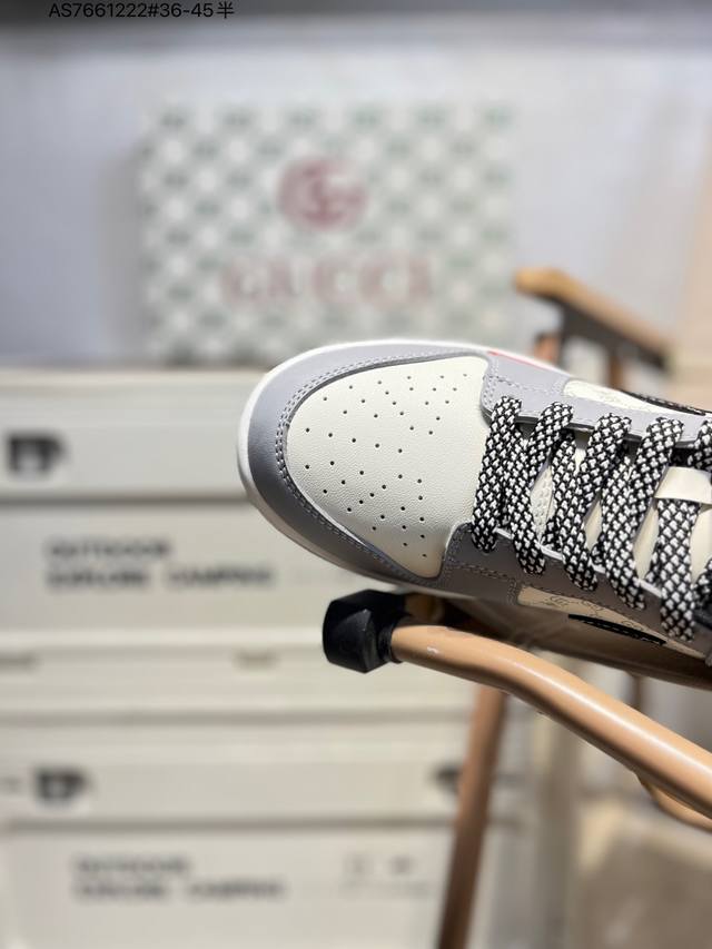 采用软质粒面头层皮革组合乌木色经典Gg帆布鞋面材质#搭载灌注Pu式缓震乳胶脚垫#全新开发复合Tpr防变形色块耐磨橡胶外底Gucci又...
