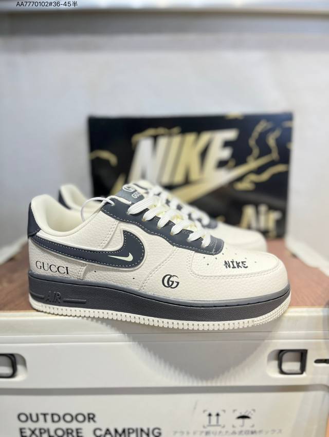 古驰 X Nk Air Force 1'07 Low 空军一号低帮休闲板鞋 #定制皮料 原楦原纸板 纯正空军版型 高清洁度 内置全掌气垫Kj1688 Aa7770102#36-45半