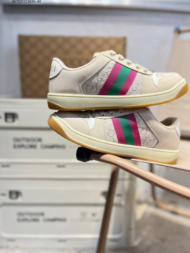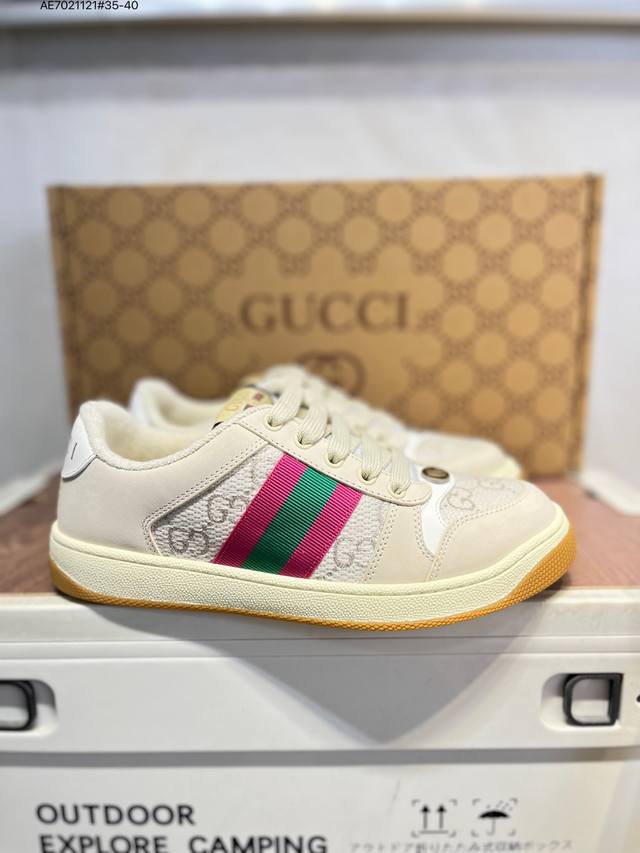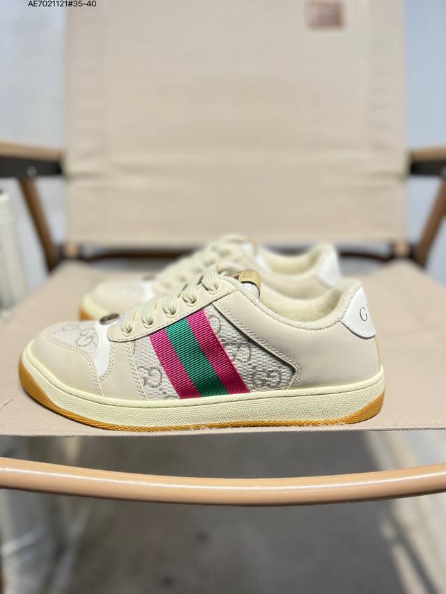 广东原厂# Gucci Distressed Screener Sneaker古驰经典小脏鞋原型复古百搭老爹板鞋 复古学院风Ae7021121#35-40 DDD