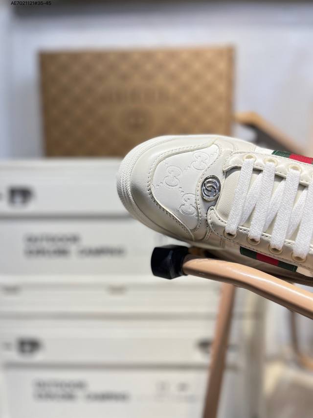 广东原厂# Gucci Distressed Screener Sneaker古驰经典小脏鞋原型复古百搭老爹板鞋 复古学院风Ae7021121#35-45 DDD
