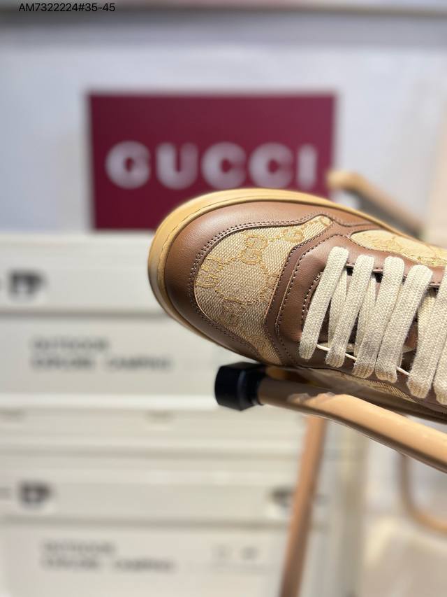 Gucci古驰 Screener 胖丁 皮革 低帮圆头系带 时尚板鞋 做旧版 采用厚底结构 巧妙运用外观设计 配色和材质三重元素...