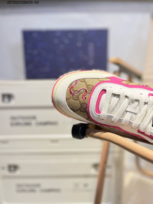 渠道优势 ! 专柜版 古驰 Gucci古驰 Rhyton 时尚厚底 防滑轻便低帮 老爹鞋 尺码:40 41 42 43 44 45 偏大半码 意大利进口头层 顶