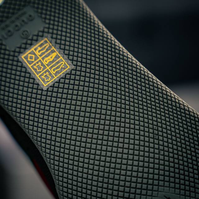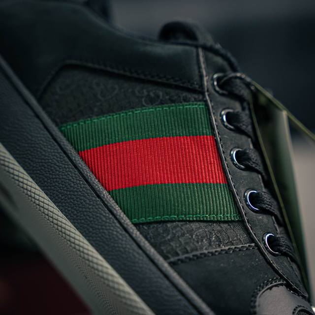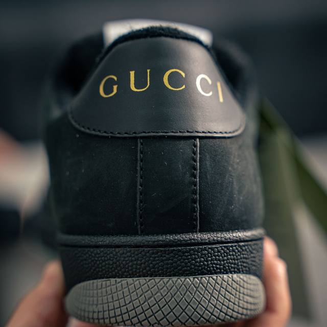 鞋面头层羊皮拼接双G压花牛皮,皮面切口全油边封口工艺,原版水染羊皮内里,细腻柔软更舒适透气,垫脚乳胶注塑一体,私模钢印双色原版Tpu大底(下层宽,上层窄)