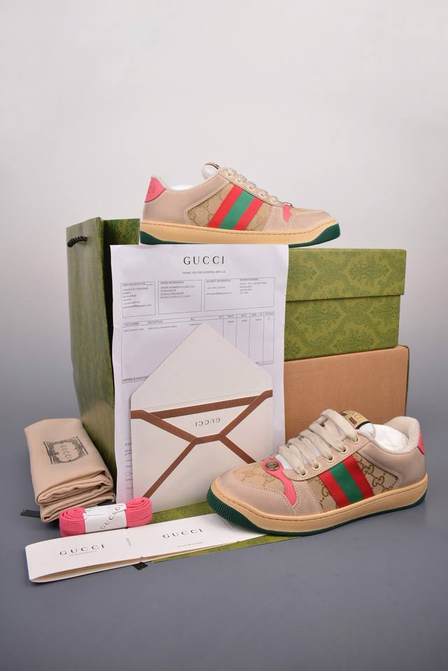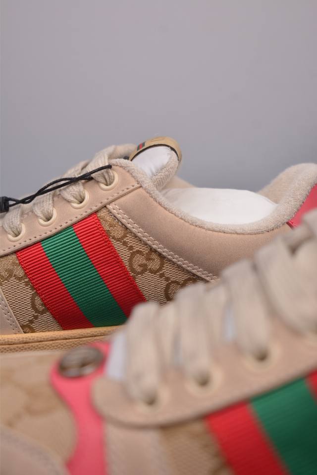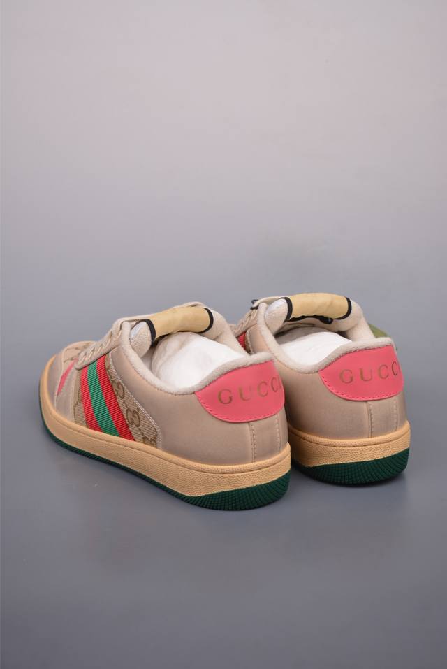 Gucci 古驰 Screener 运动休闲时装奢侈品系列 Gg珐琅扣 擦脏做旧小脏鞋 纯原级别
