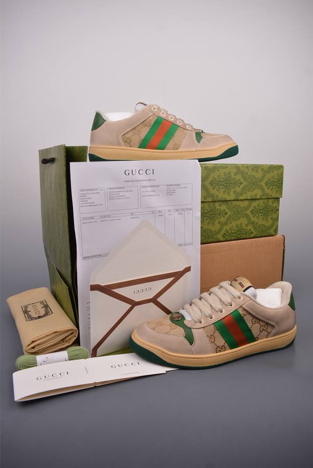 Gucci 古驰 Screener 运动休闲时装奢侈品系列 Gg珐琅扣 擦脏做旧小脏鞋 纯原级别