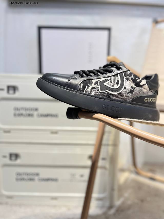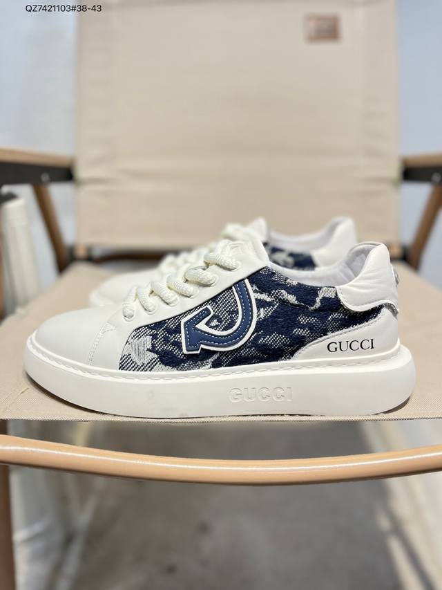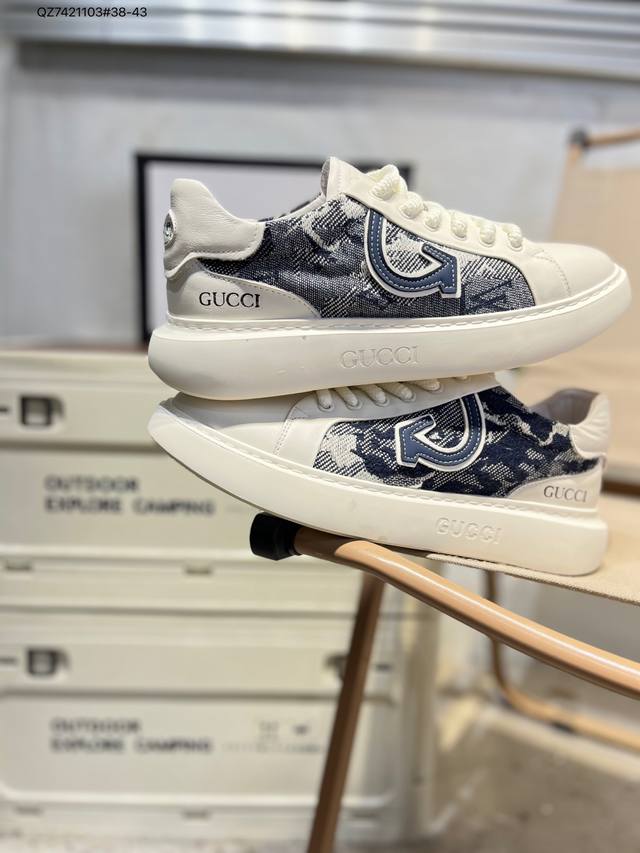 Gucci古驰 皮革 圆头系带厚底 低帮板鞋 时尚撞色 拼接头层牛皮可感知的柔软皮料,舒适脚感轻松学控,侧面撞色织带点亮视觉焦点 偏大一码 0707 Qz7421103#38-43 DDD
