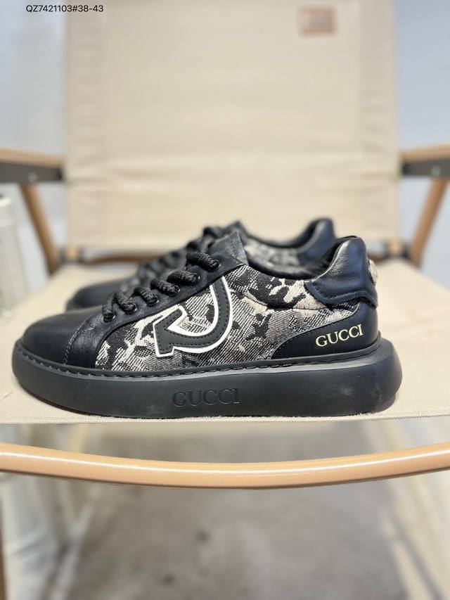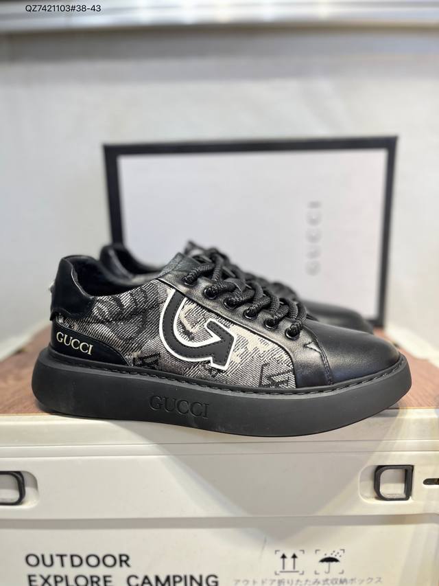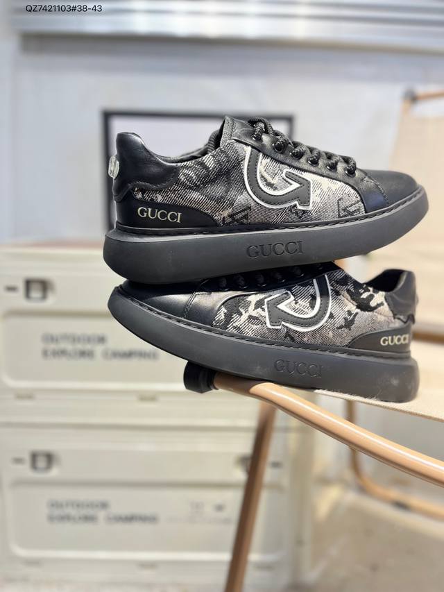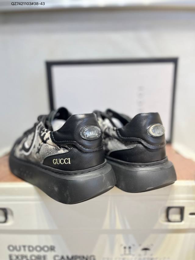 / Gucci古驰 皮革 圆头系带厚底 低帮板鞋 时尚撞色 拼接头层牛皮可感知的柔软皮料,舒适脚感轻松学控,侧面撞色织带点亮视觉焦点 偏大一码 0707 Qz742