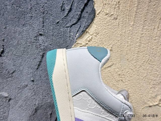 采用软质粒面头层皮革组合乌木色经典Gg帆布鞋面材质#搭载灌注Pu式缓震乳胶脚垫#全新开发复合Tpr防变形色块耐磨橡胶外底Gucci又...