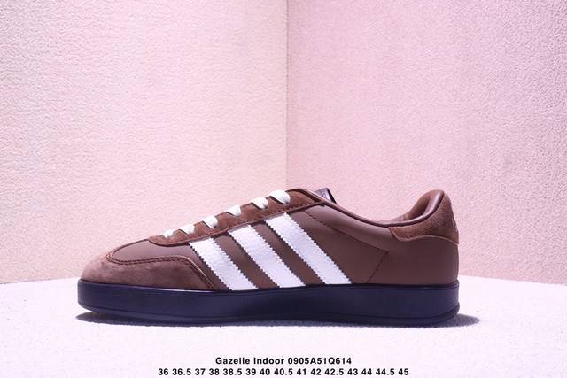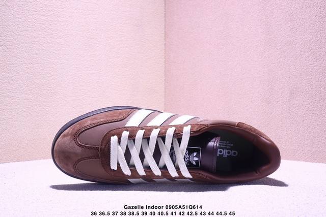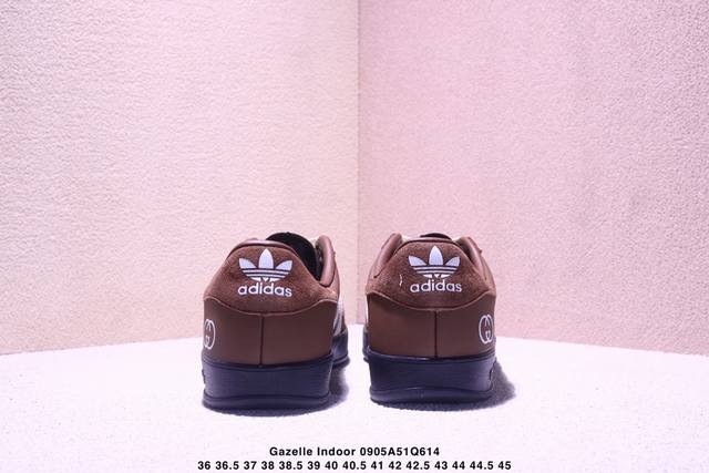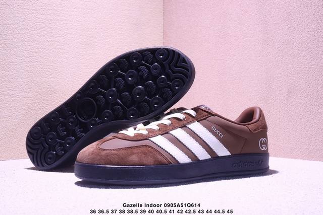 高端定制 Ad Gazelle Indoor Trainers 古驰联名---棕黑白 原厂定制长毛翻毛皮组合环保纤维革鞋面材质