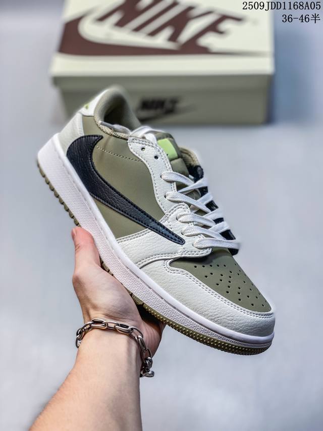 Air Jordan 1 Low Og Sp X Stussy 斯图西联名 乔丹1代低帮板鞋 倒勾限定 Diy定制 牛皮材质 公司级 真标带半码 Size:36