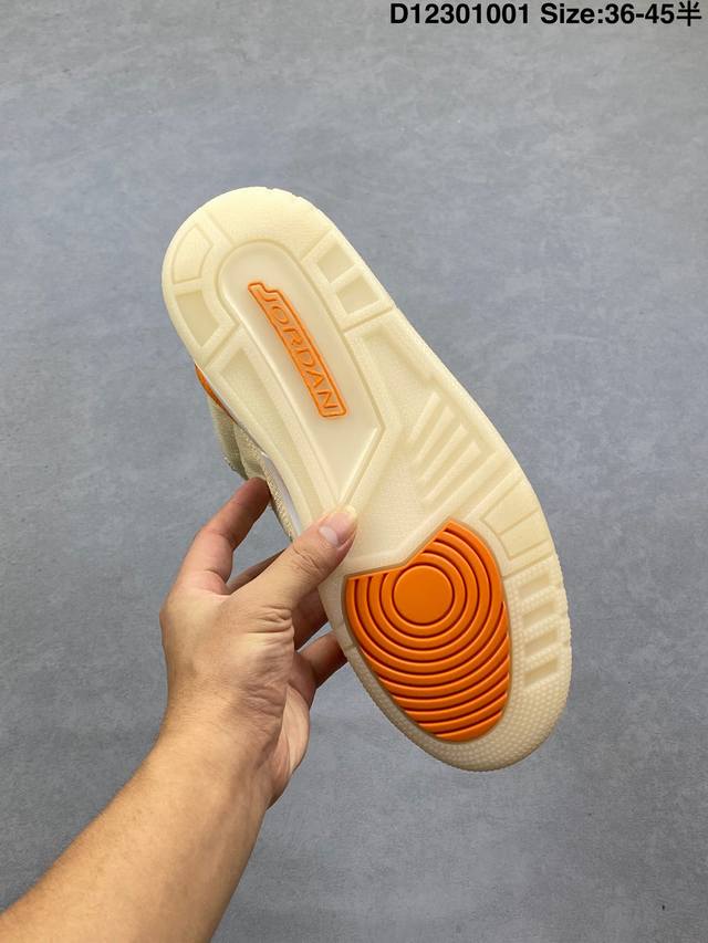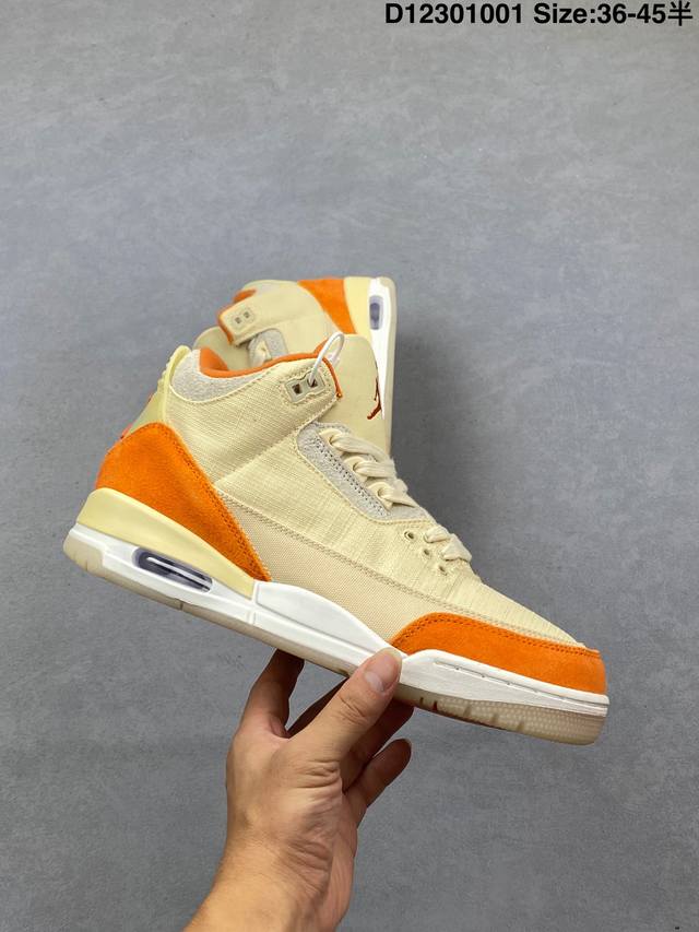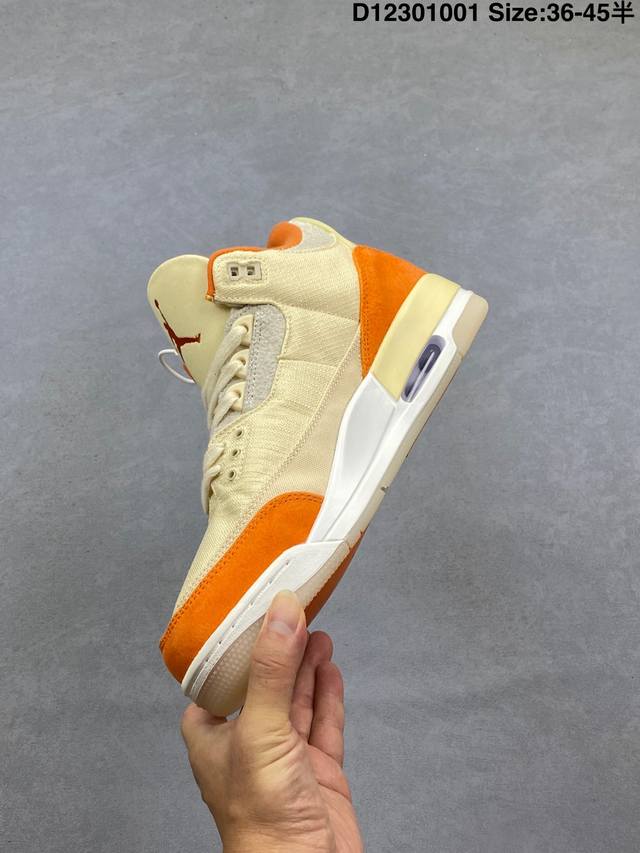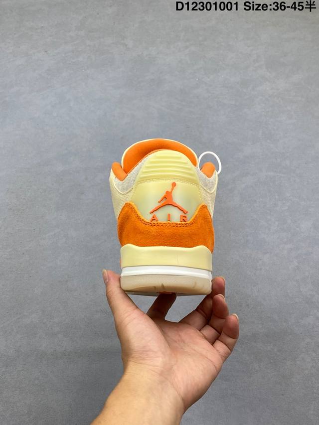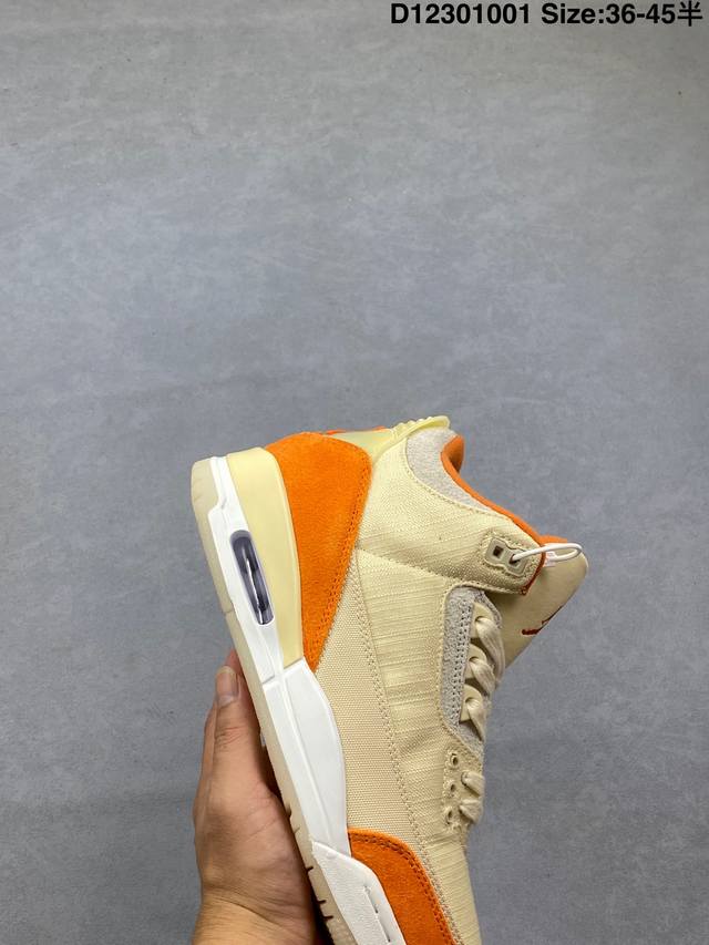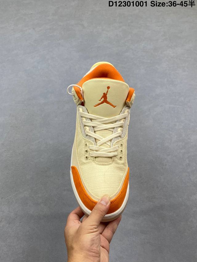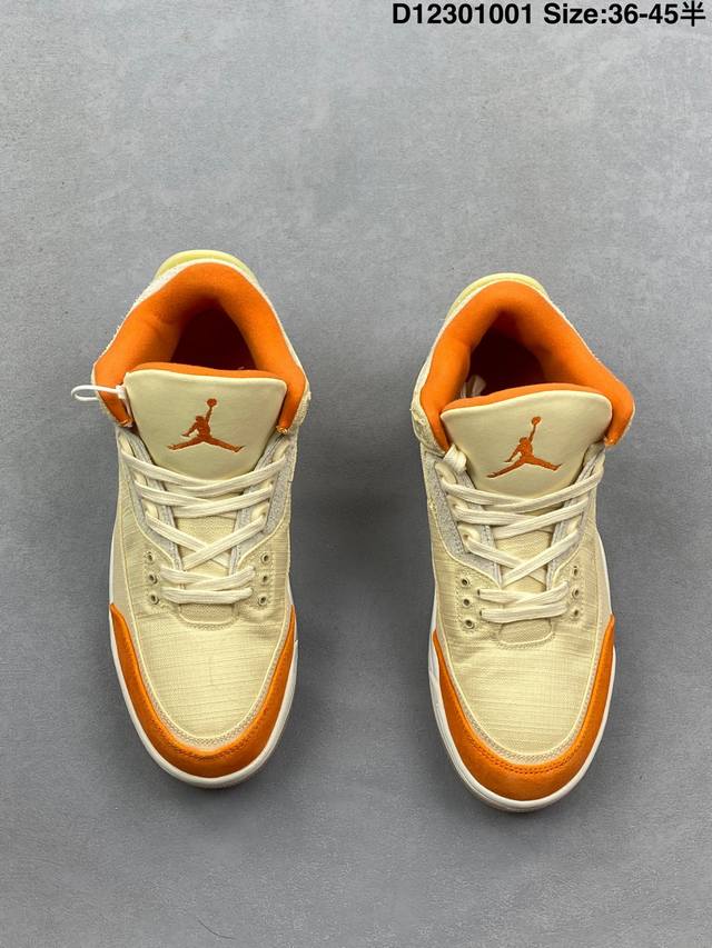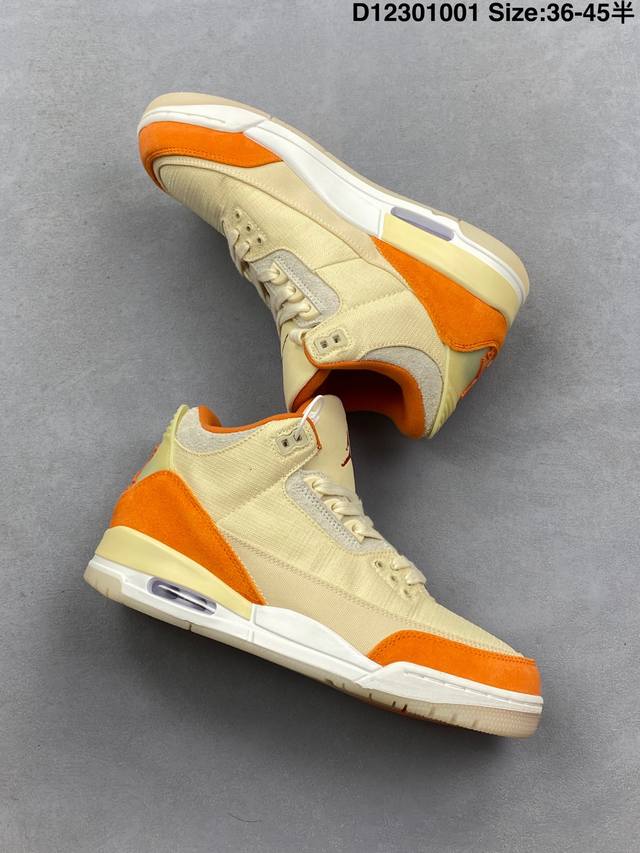 / 乔丹Air Jordan 3 Retro Starfish Aj3 乔3海星橙鞋身采用亮橙搭配沙色示人,相较于过往皮革鞋身所独有复古气质,本次改以粗犷棉布织物与