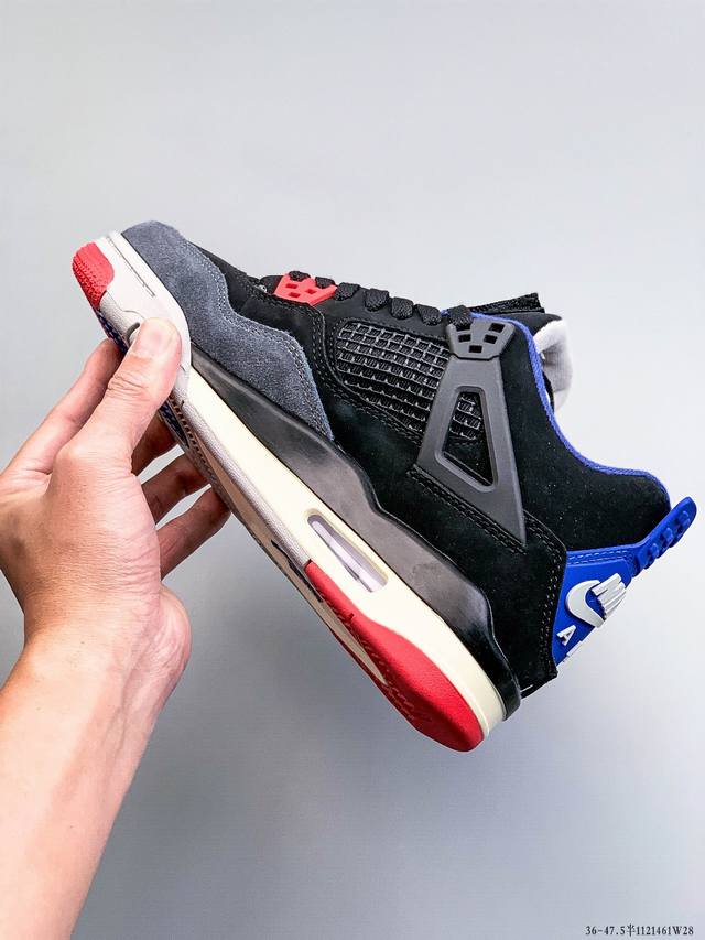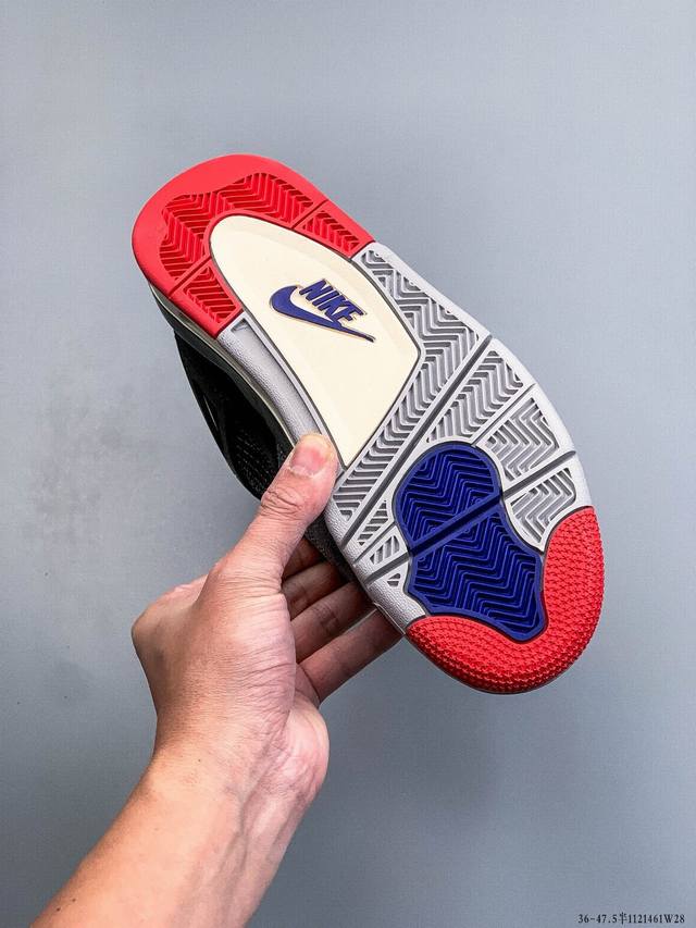 二层真标!Air Jordan 4 Aj4代中帮复古休闲运动文化篮球鞋。秉承轻量化的速度型篮球鞋设计思想完成设计,降低重量的同时提升舒适度,中底延续前作使用了分离式后掌可视化 Air Sole气垫。鞋带孔和后跟鞋提以籃网为造型灵感,将篮球运动巧妙融入到鞋款的设计之中,使鞋身整体富有流动性、节奏感和优雅气质 DDD 1121461W28 DDD
