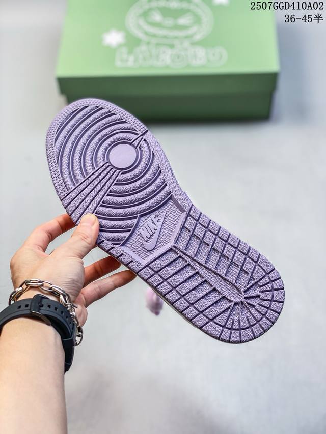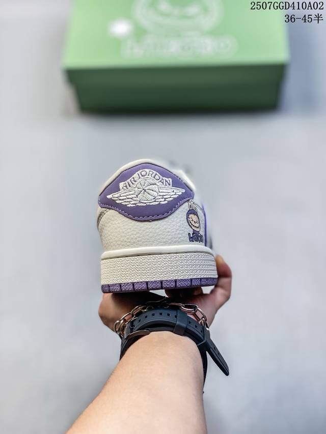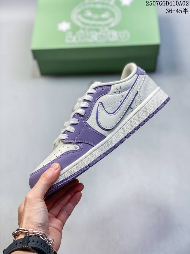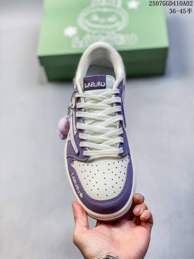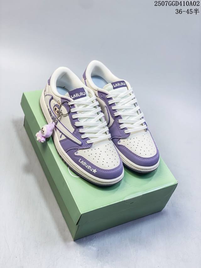 公司级 时尚元素X Jordan Air Jordan Low 倒勾 “Labubu联名'',梦幻紫白配色,融合了Travis Scott 独特的潮流风格,个性的设计风格以及Jordan品牌的经典元素 使其成为一双具有独特身份和价值的鞋子 清新而立体的外观加上联名标识更突出了其独特身份 独有配色方案显示出活力和时尚感 在视觉冲击的同时 鞋身的质感和细腻的细节处理使其显得高端而格调十足 这款“倒钩”联名是设计与创意完美结合 融合多方的个性风格是一款备受瞩目的潮流鞋款 定制鞋盒 大厂纯原品质