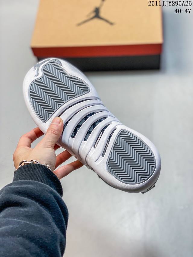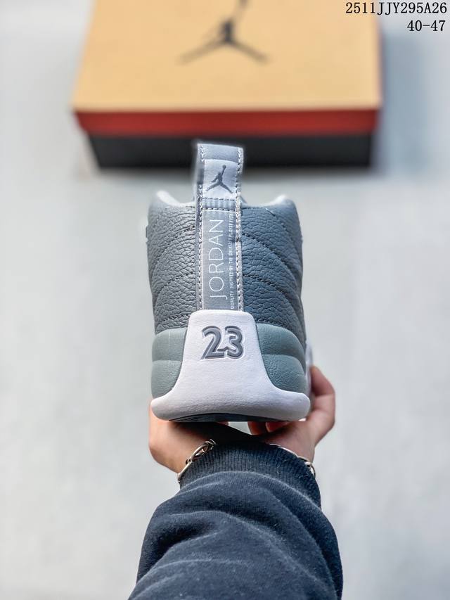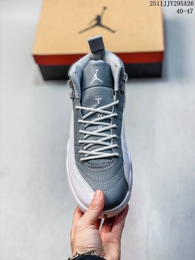 / 公司级:Air Jordan 12 ”Stealth“ Aj12 乔12 乔丹12代酷灰 货号:Ct8013-140 鞋款以酷灰银、白色和冷灰色配色方案,鞋款与