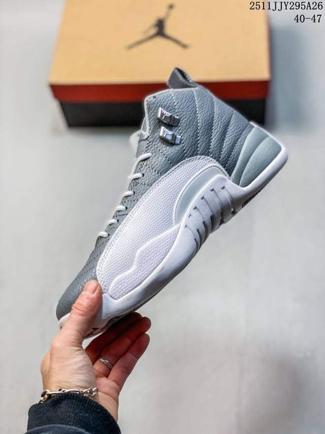 公司级:Air Jordan 12 ”Stealth“ Aj12 乔12 乔丹12代酷灰 货号:Ct8013-140 鞋款以酷灰银、白色和冷灰色配色方案,鞋款与