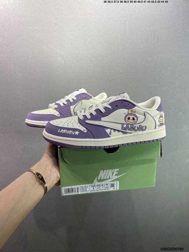 Hipanda X Travis Scott Air Jordan 1 Low 暴力熊联名倒钩合作融合了Travis Scott 独特的潮流风格,个性的设计风格