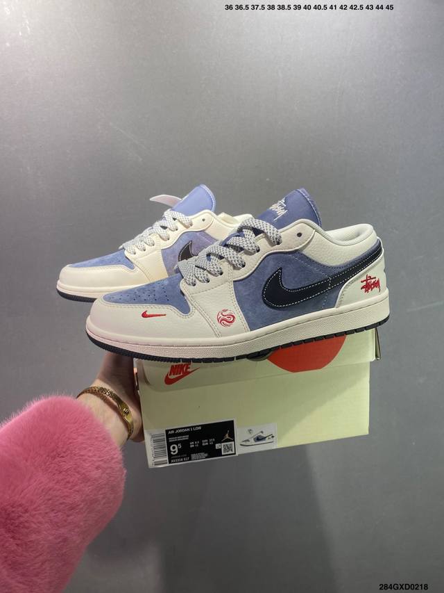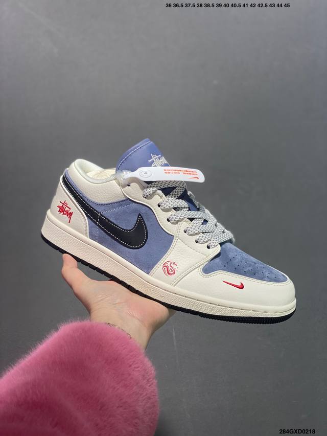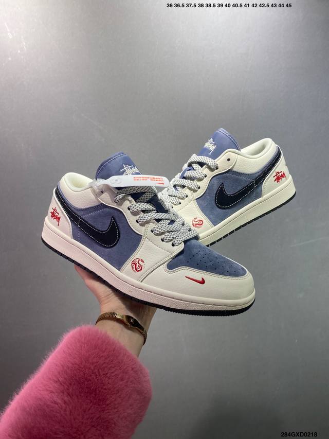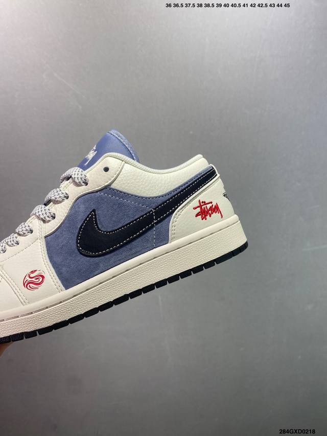 公司级Stussy X Air Jordan 1 Low 蛇年限定 米白深灰勾