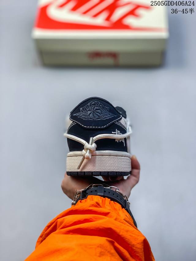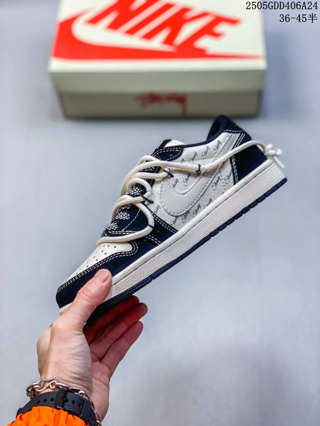 外爆款限量发售 公司级 Travis Scott X Fragment Design X Jordan Air Jordan 1 Low Og Sp 斯图西联名 英文黑线抽绳 多方联名合作融合了Travis Scott 独特的音乐风格 藤原浩个性的设计风格以及Jordan品牌的经典元素 使其成为一双具有独特身份和价值的鞋子 清新而立体的外观加上联名标识更突出了其独特身份 这种配色方案显示出活力和时尚感 在视觉上引人注目 鞋身的质感和细腻的细节处理使其显得高端而格调十足 这款 倒钩 联名是设计与创意完美结合