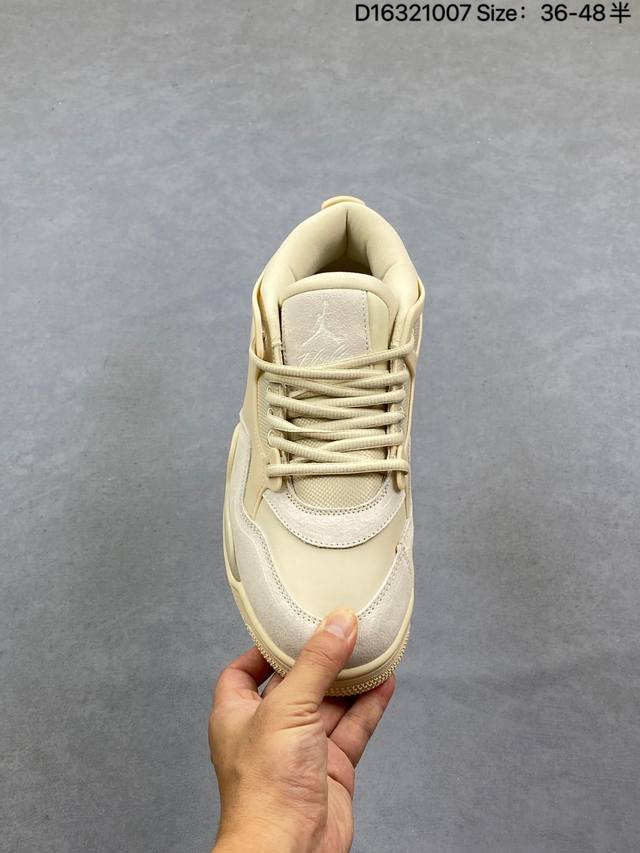 性价比版本Air Jordan 4 Rm ”Black Sail“ 重置黑白 Aj4 乔丹4代 Aj4 乔4 重置黑白 乔丹篮球鞋系列 整鞋采用皮革与麂皮材料打造,鞋面使用黑色皮革作为主体,搭配鞋头黑色麂皮框架,保留Air Jordan 4经典造型的同时,取消了原本的网格,搭配黑色的鞋带,让整鞋看起来更有整体感。鞋舌顶端黑色的标签上锈有红色Jumpxman Logo以及Flight字样,彰显球鞋身份。鞋帮部分和后跟位置的提环使用白色Tpu材质,给鞋身带来更多色彩层次感。后跟采用黑色Nike Swoosh