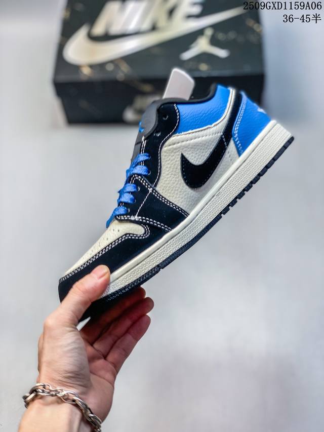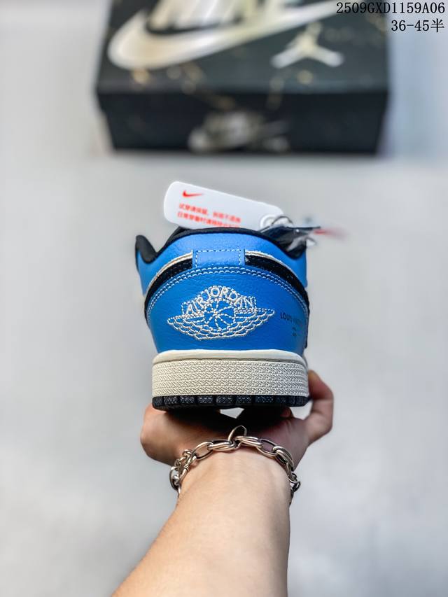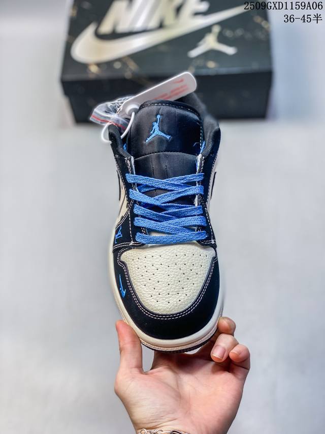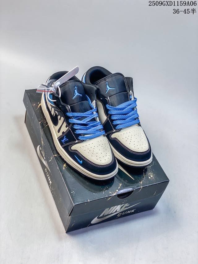 海外爆款限量发售!公司级 Travis Scott X Fragment Design X Jordan Air Jordan 1 Low Og Sp “斯图西联名 黑蓝英文” 多方联名合作融合了Travis Scott 独特的音乐风格,藤原浩个性的设计风格以及Jordan品牌的经典元素 使其成为一双具有独特身份和价值的鞋子 清新而立体的外观加上联名标识更突出了其独特身份 这种配色方案显示出活力和时尚感 在视觉上引人注目 鞋身的质感和细腻的细节处理使其显得高端而格调十足 这款“倒钩”联名是设计与创意完美结