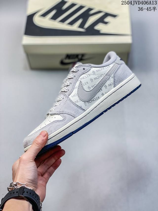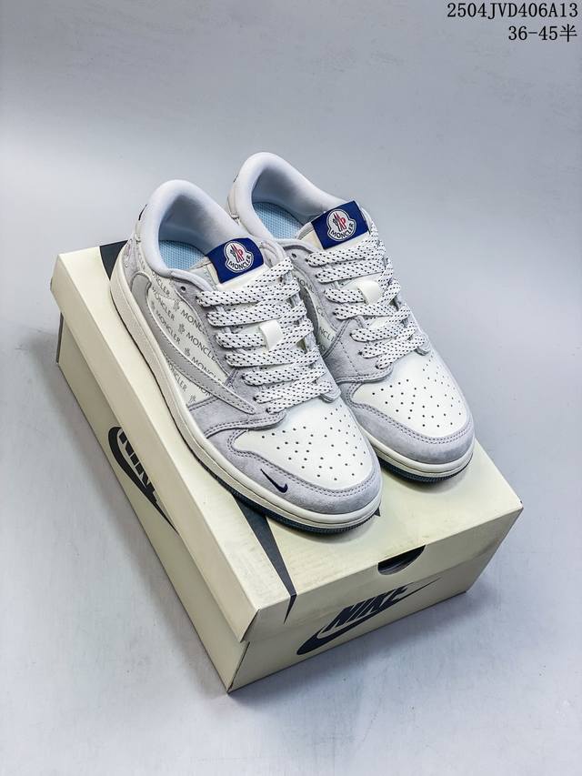 海外爆款限量发售!公司级 Travis Scott X Fragment Design X Jordan Air Jordan 1 Low Og Sp “蒙口联名 白灰英文” 多方联名合作融合了Travis Scott 独特的音乐风格,藤原浩个性的设计风格以及Jordan品牌的经典元素 使其成为一双具有独特身份和价值的鞋子 清新而立体的外观加上联名标识更突出了其独特身份 这种配色方案显示出活力和时尚感 在视觉上引人注目 鞋身的质感和细腻的细节处理使其显得高端而格调十足 这款“倒钩”联名是设计与创意完美结合