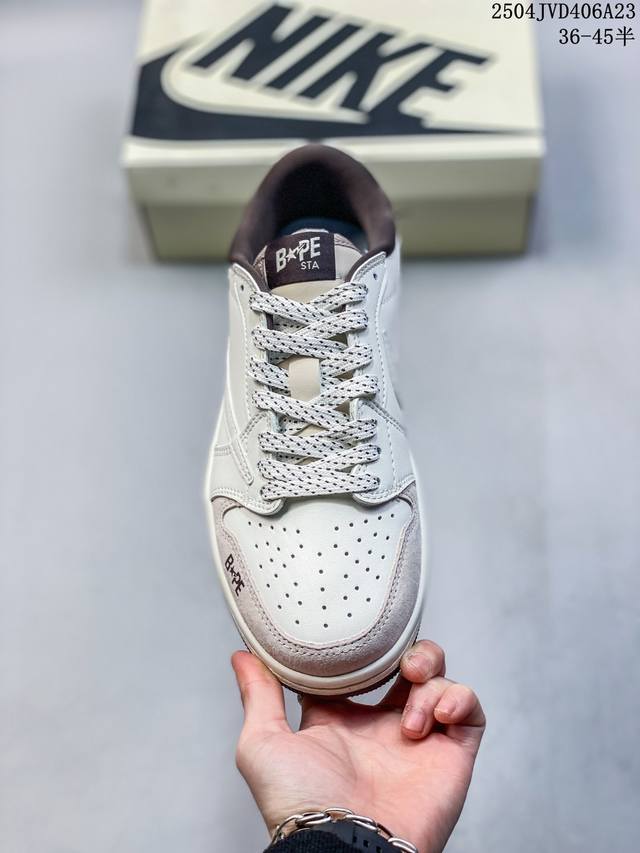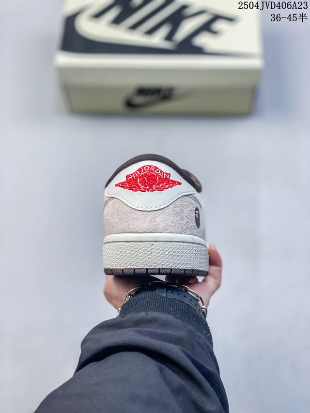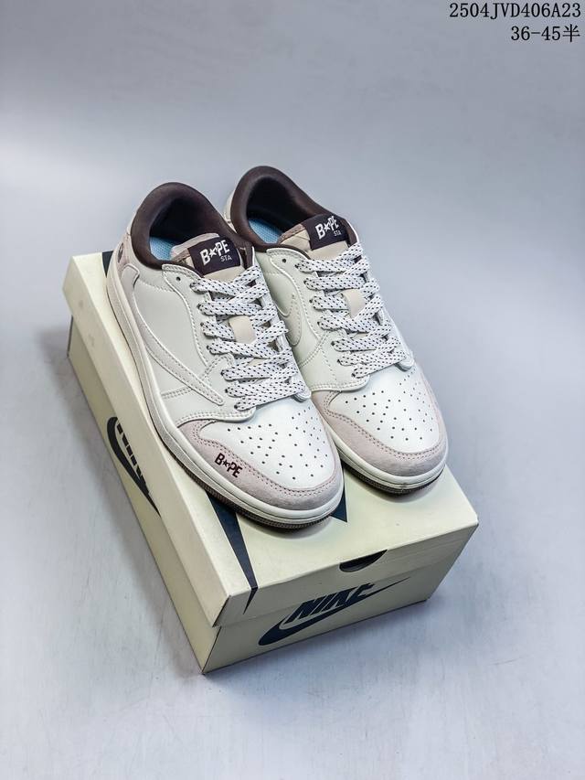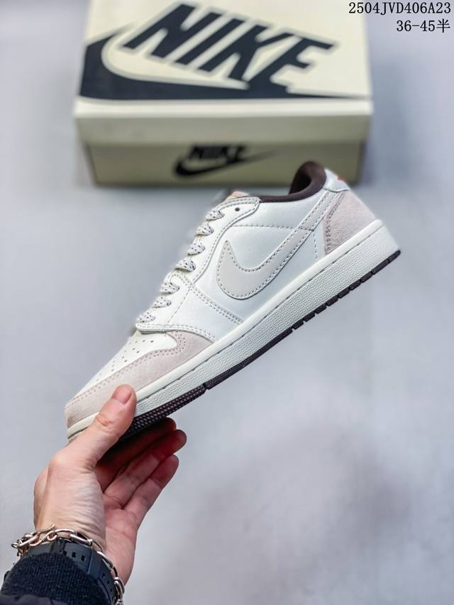 海外爆款限量发售!公司级 Travis Scott X Fragment Design X Jordan Air Jordan 1 Low Og Sp “Bape联名 菱花白” 多方联名合作融合了Travis Scott 独特的音乐风格,藤原浩个性的设计风格以及Jordan品牌的经典元素 使其成为一双具有独特身份和价值的鞋子 清新而立体的外观加上联名标识更突出了其独特身份 这种配色方案显示出活力和时尚感 在视觉上引人注目 鞋身的质感和细腻的细节处理使其显得高端而格调十足 这款“倒钩”联名是设计与创意完美结