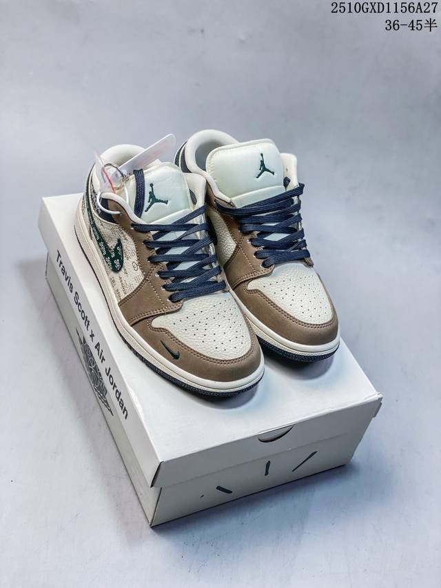 公司级Ts X Air Jordan Aj1 Low 倒钩低帮联名定制配色 Fc1688-214 原厂内置气垫魔块 A模大底 头层小牛皮 鞋舌Aj原厂专用牛津布