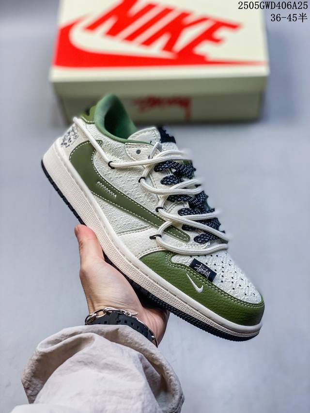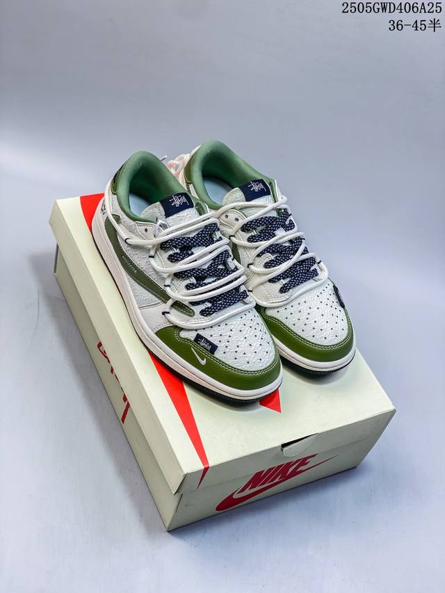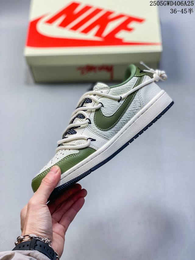 海外爆款限量发售 Travis Scott X Fragment Design X Jordan Air Jordan 1 Low Og Sp 斯图西联名 绿麻抽绳 多方联名合作融合了Travi翻毛蓝勾S Scott 独特的音乐风格 藤原浩个性的设计风格以及Jordan品牌的经典元素 使其成为一双具有独特身份和价值的鞋子 清新而立体的外观加上联名标识更突出了其独特身份 这种配色方案显示出活力和时尚感 在视觉上引人注目 鞋身的质感和细腻的细节处理使其显得高端而格调十足 这款 倒钩 联名是设计与创意完美结合