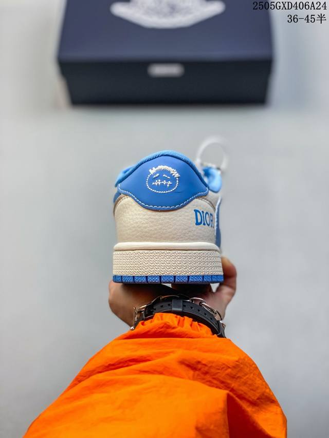 海外爆款限量发售 Travis Scott X Fragment Design X Jordan Air Jordan 1 Low Og Sp 迪奥联名 天蓝米白 多方联名合作融合了Travi翻毛蓝勾S Scott 独特的音乐风格 藤原浩个性的设计风格以及Jordan品牌的经典元素 使其成为一双具有独特身份和价值的鞋子 清新而立体的外观加上联名标识更突出了其独特身份 这种配色方案显示出活力和时尚感 在视觉上引人注目 鞋身的质感和细腻的细节处理使其显得高端而格调十足 这款 倒钩 联名是设计与创意完美结合 融