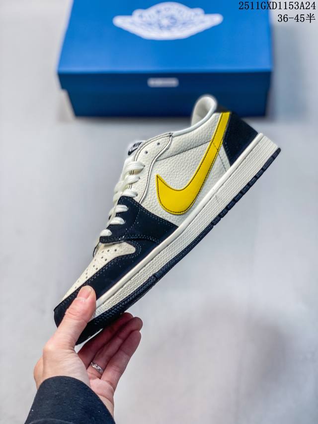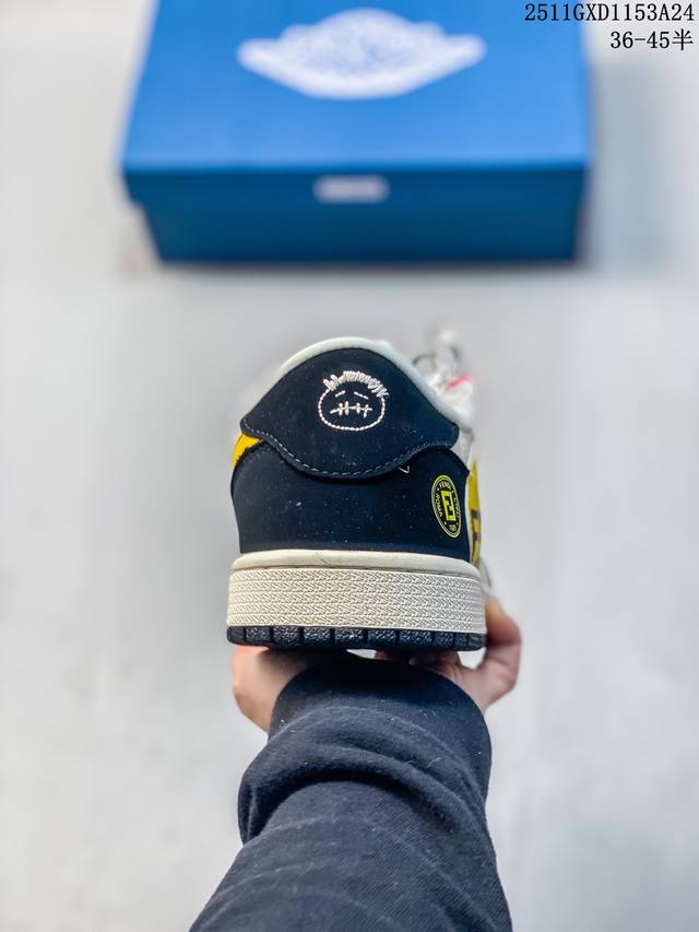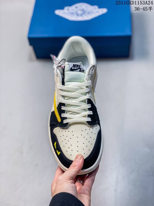 / 海外爆款限量发售! Travis Scott X Jordan 1 Low “芬迪联名 字母米黑黄” 高端定制 乔丹倒勾低帮休闲板鞋 大厂纯原品质出货 纯正版型