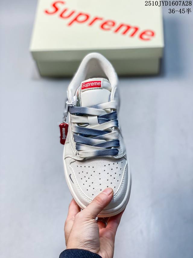 海外爆款限量发售! Travis Scott X Jordan 1 Low “Supreme联名 猪八双拼米灰” 高端定制 乔丹倒勾低帮休闲板鞋 大厂纯原品质出货 纯正版型 定制鞋盒 皮料切割干净无任何毛边 细节完美 超高清洁度 货号:Hh7518-001 Size:36 36.5 37.5 38 38.5 39 40 40.5 41 42 42.5 43 44 44.5 45 10Jyd1607A28