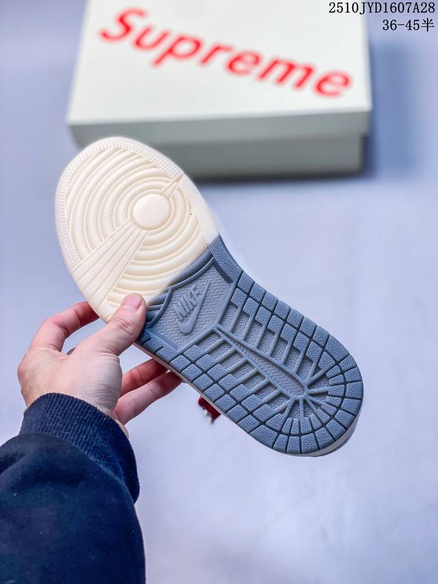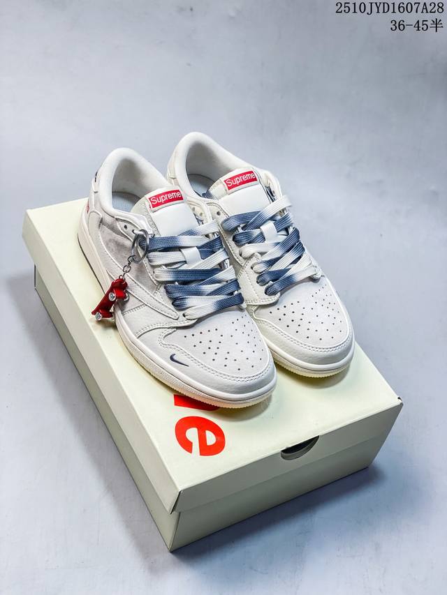 / 海外爆款限量发售! Travis Scott X Jordan 1 Low “Supreme联名 猪八双拼米灰” 高端定制 乔丹倒勾低帮休闲板鞋 大厂纯原品质出