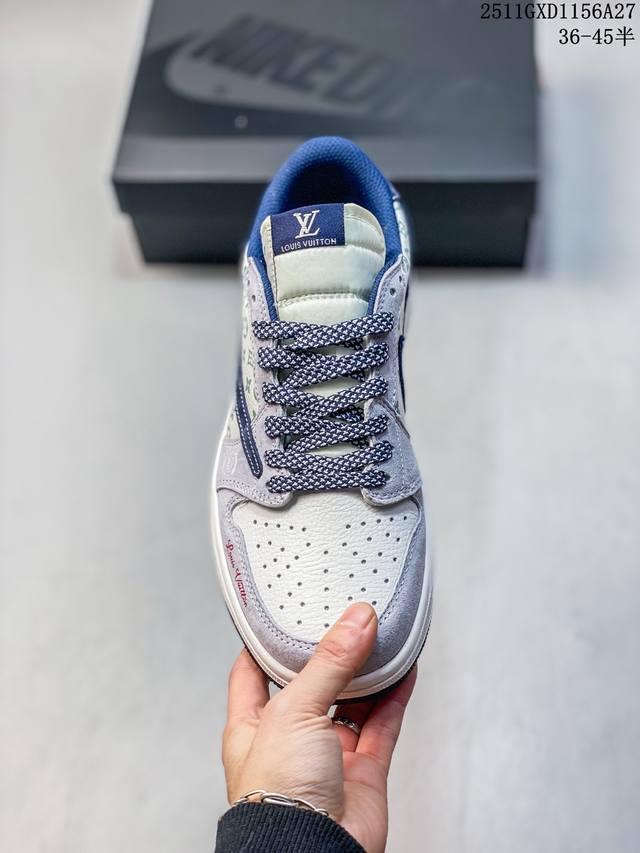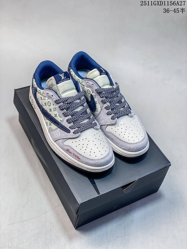 海外爆款限量发售!Travis Scott X Fragment Design X Jordan Air Jordan 1 Low Og Sp “Lv联名 会蓝猪八鬼脸” 多方联名合作融合了Travi翻毛蓝勾S Scott 独特的音乐风格,藤原浩个性的设计风格以及Jordan品牌的经典元素 使其成为一双具有独特身份和价值的鞋子 清新而立体的外观加上联名标识更突出了其独特身份 这种配色方案显示出活力和时尚感 在视觉上引人注目 鞋身的质感和细腻的细节处理使其显得高端而格调十足 这款“倒钩”联名是设计与创意完美