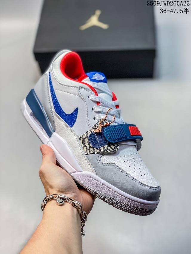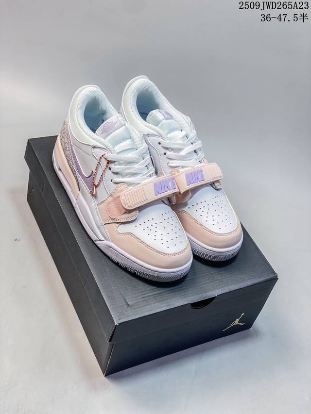 Air Jordan Legacy Aj312 低帮 鞋身采用了皮革材质打造 横跨鞋面的魔术贴十分吸睛 侧面的Swoosh Logo的一部分被鞋面遮挡了一部分 颇具玩味 魔术贴上标有Nk标识 而鞋舌上是Jordan的经典飞翼Logo 后跟和鞋底均采用了Air Jordan 3 的设计 后跟上同样也使用了经典的爆裂纹图案