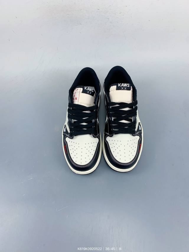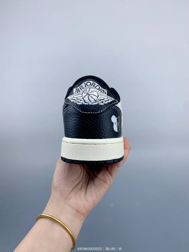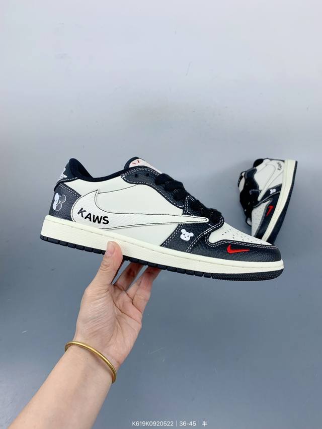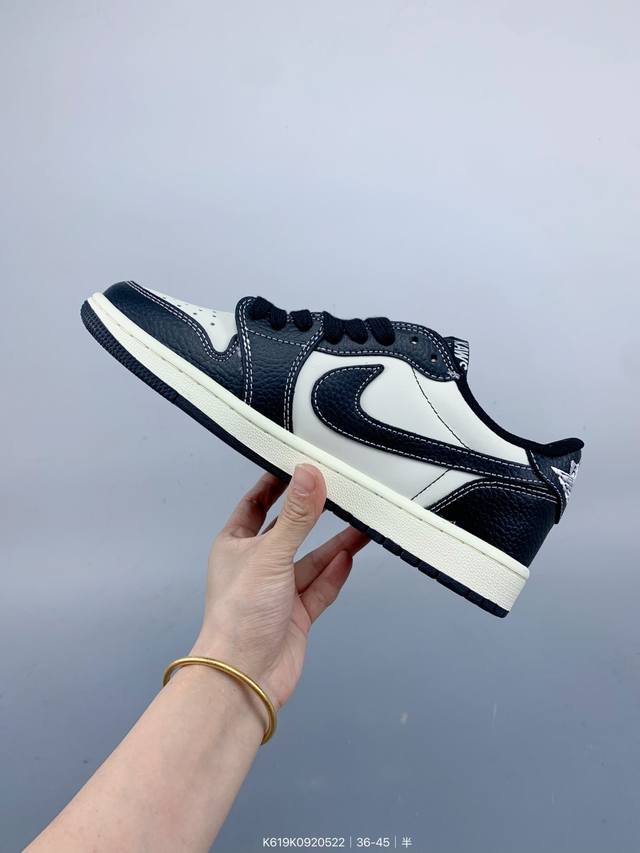 高端定制 Travis Scott X Jordan 1 Low 暴力熊联名-黑白小红勾 倒勾低帮休闲版本 原厂全头层皮 大厂纯原品质出货 纯正版型 定制鞋盒 皮料切割干净无任何毛边 细节完美 超高清洁度