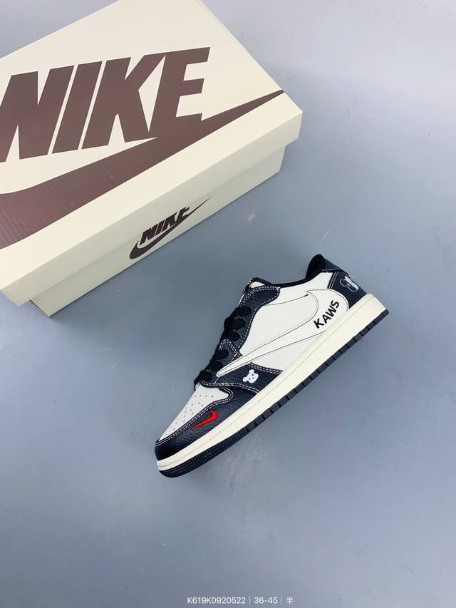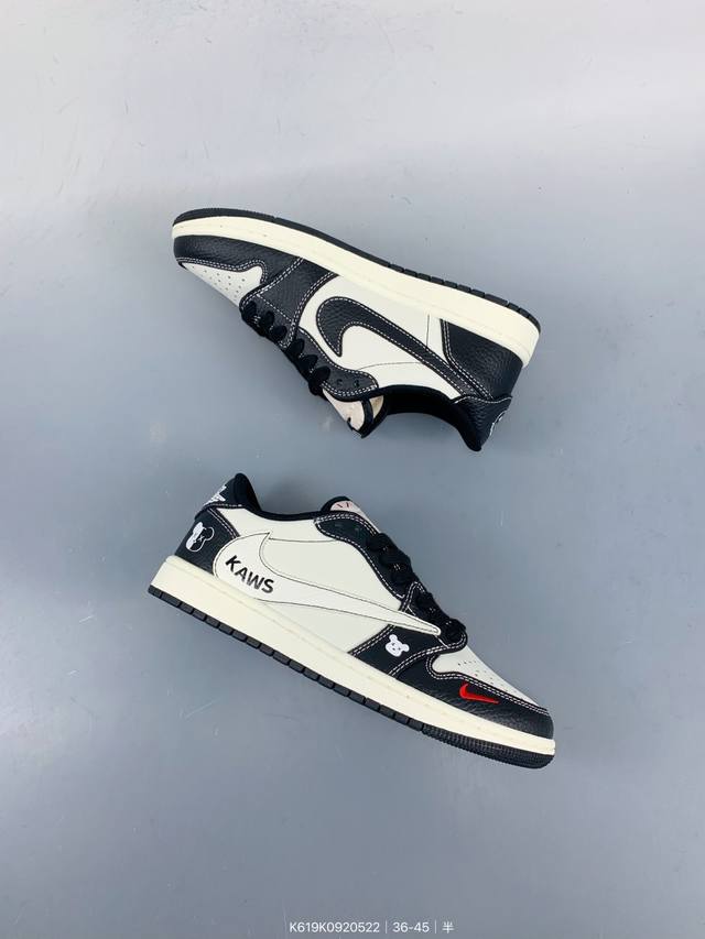 高端定制 Travis Scott X Jordan 1 Low 暴力熊联名-黑白小红勾 倒勾低帮休闲版本 原厂全头层皮 大厂纯原品质出货 纯正版型 定制鞋盒